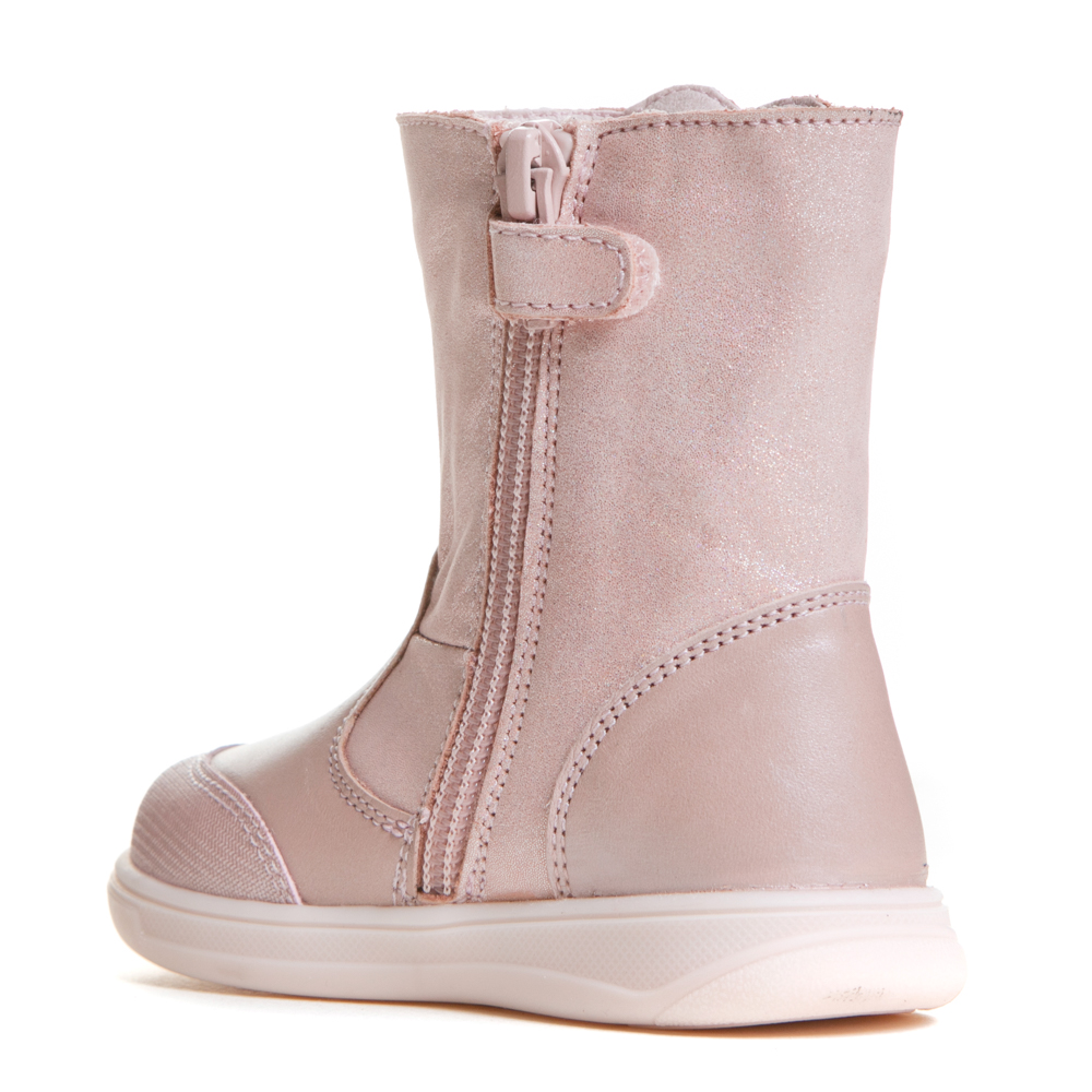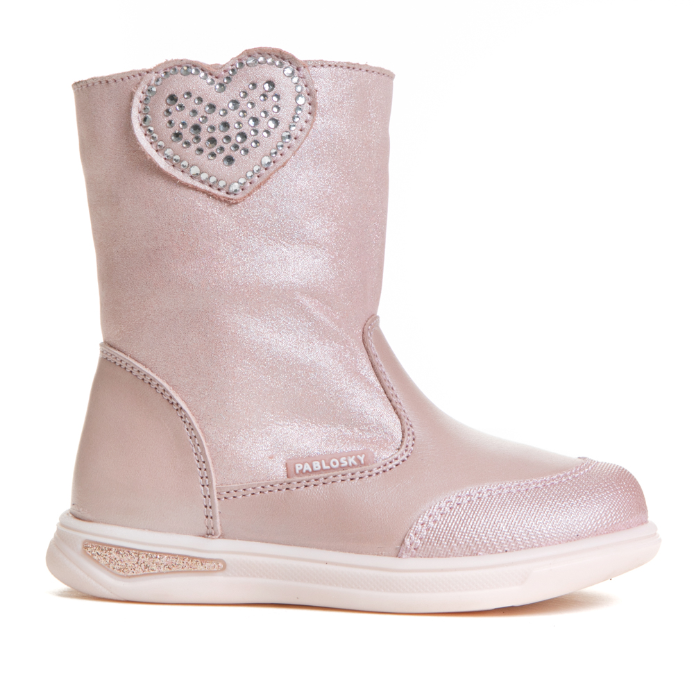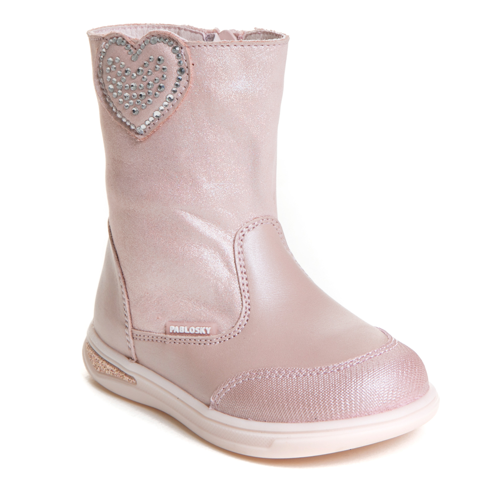 Pablosky μποτάκι με φερμουάρ.Διαθέτει μια καρδιά στο πλάι.Το εσωτερικό αποτελείται από ύφασμα και υφασμάτινο,ανατομικό,αντιβακτηριακό πατάκι.Η εξωτερική σόλα αποτελείται από λάστιχο.