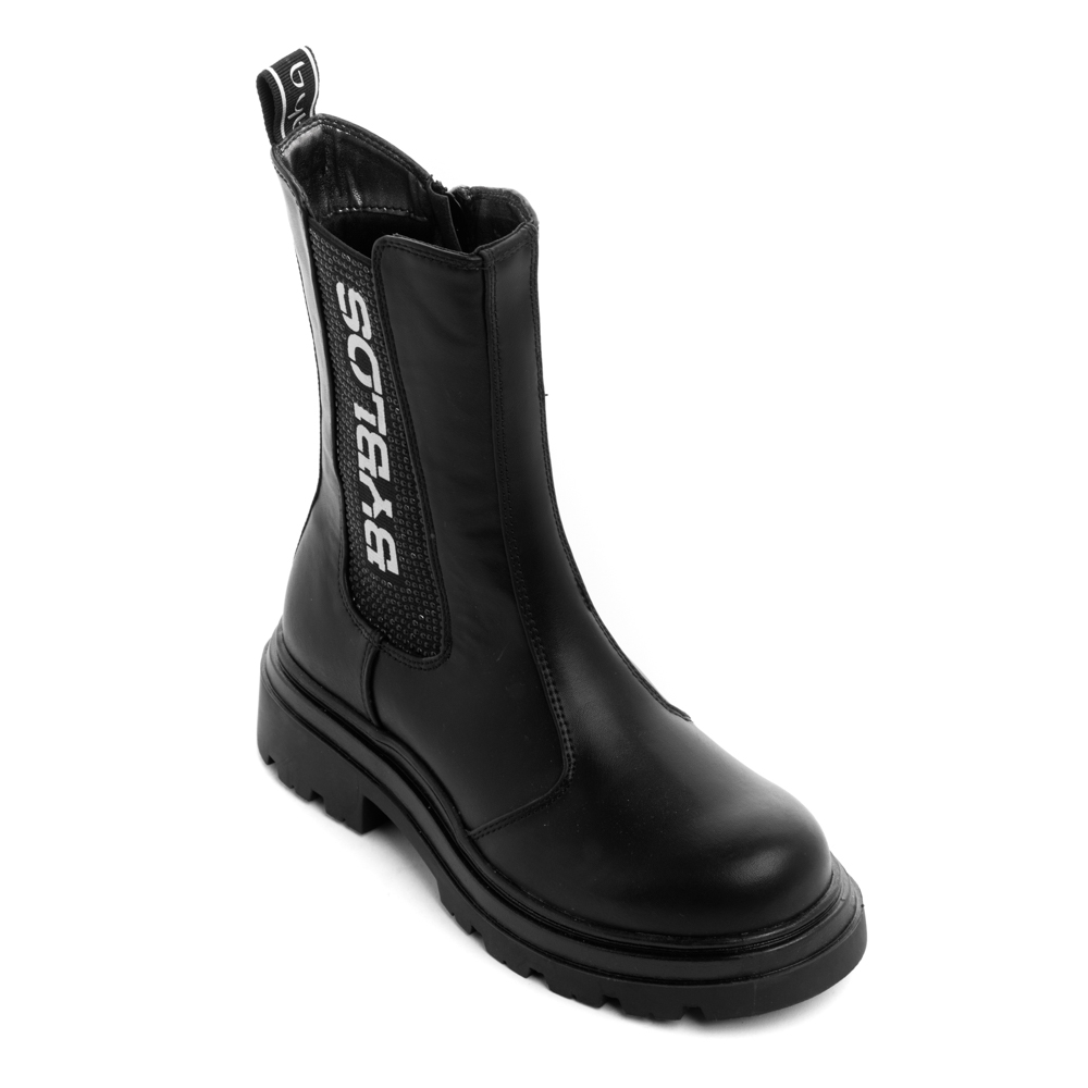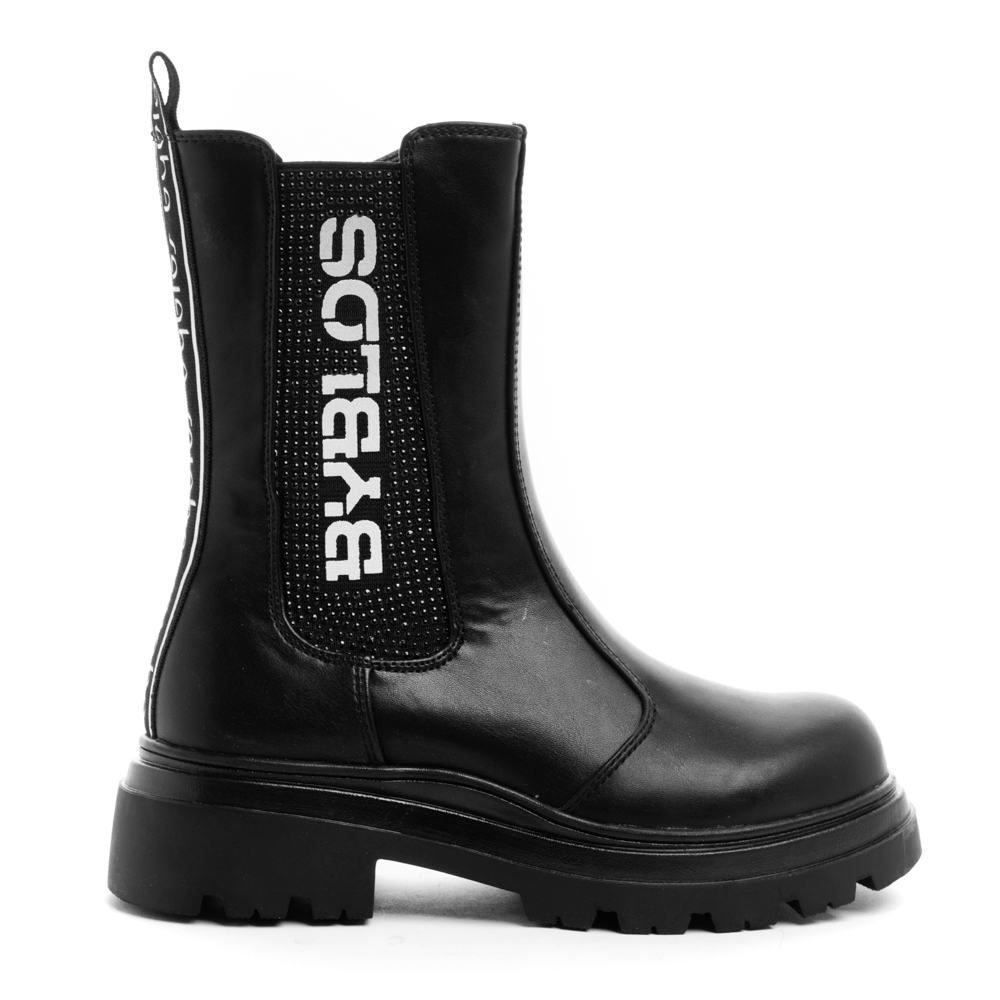 Byblos μποτάκι με φερμουάρ.Διαθέτει το όνομα του brand στο πλάι.Το εσωτερικό αποτελείται από ύφασμα και δερμάτινο πατάκι.Η εξωτερική σόλα αποτελείται από λάστιχο.