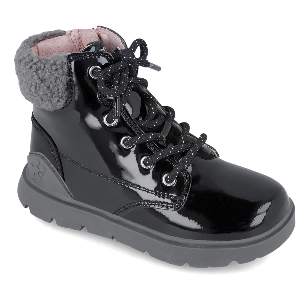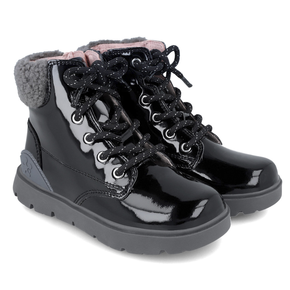 Biomecanics μποτάκι με κορδόνια και φερμουάρ. Διαθέτει γούνα στο επάνω μέρος. Το εσωτερικό αποτελείται από δέρμα και δερμάτινο,ανατομικό,αντιβακτηριακό πατάκι. Η εξωτερική σόλα αποτελείται από λάστιχο.
