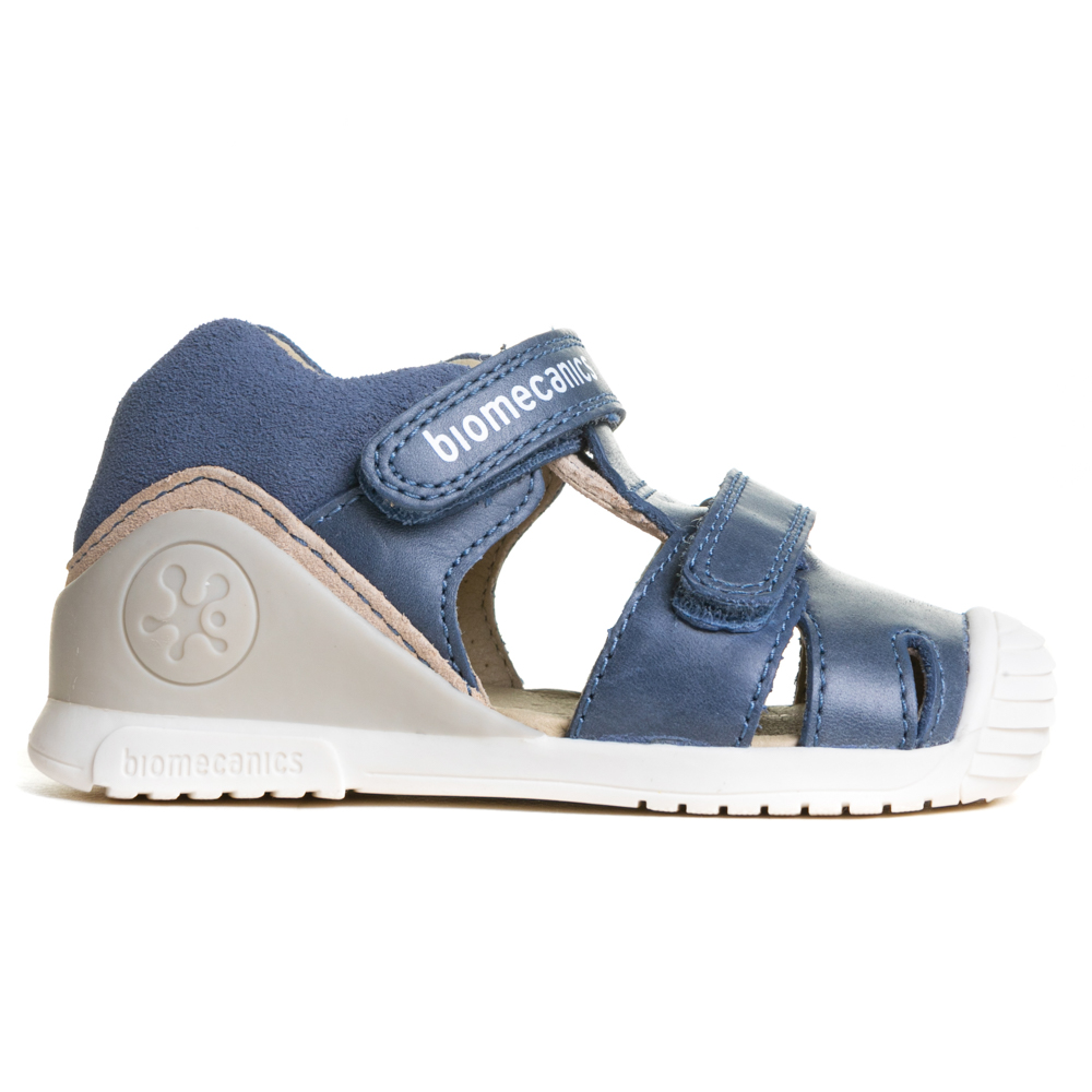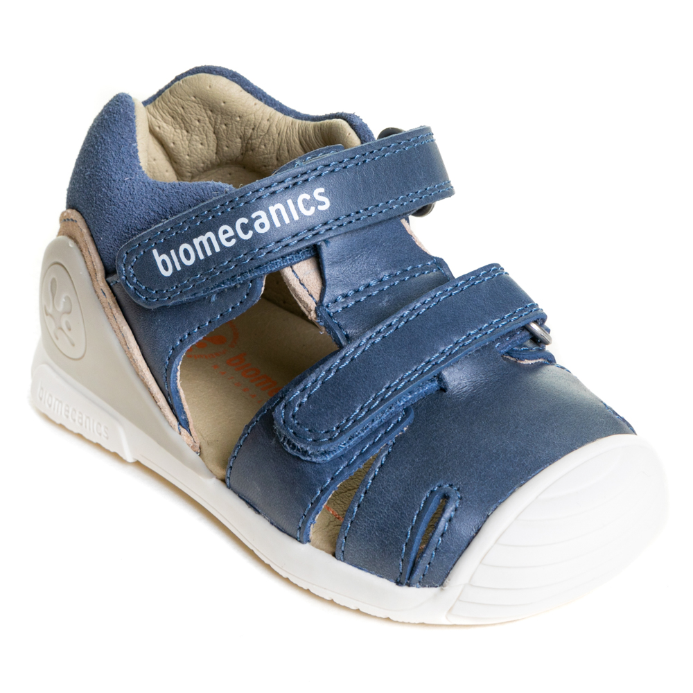 Biomecanics παπουτσοπέδιλο με αυτοκόλλητα. Το εσωτερικό αποτελείται από δέρμα και δερμάτινο,ανατομικό,αντιμικροβιακό πατάκι. Η εξωτερική σόλα αποτελείται από λάστιχο.