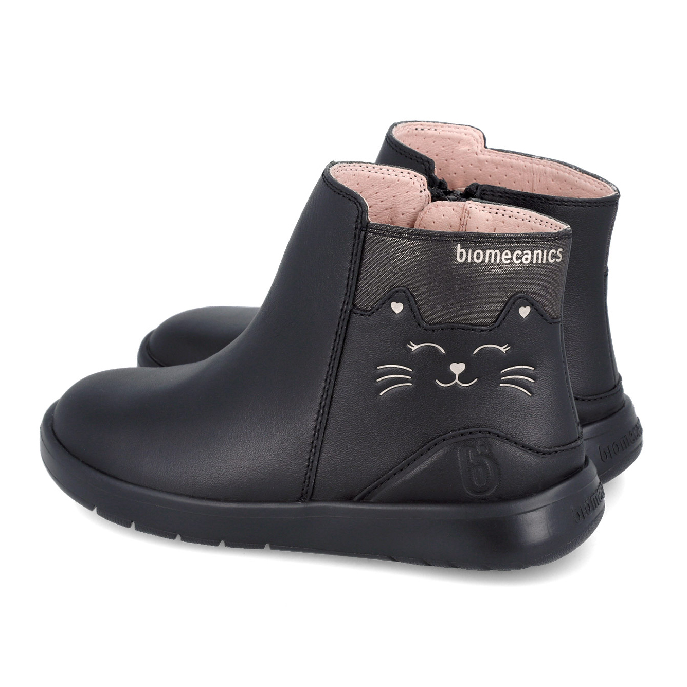 Biomecanics μποτάκι με φερμουάρ. Διαθέτει μια φατσούλα στο πλάι. Το εσωτερικό αποτελείται από δέρμα και δερμάτινο,ανατομικό,αντιβακτηριακό πατάκι. Η εξωτερική σόλα αποτελείται από λάστιχο.
