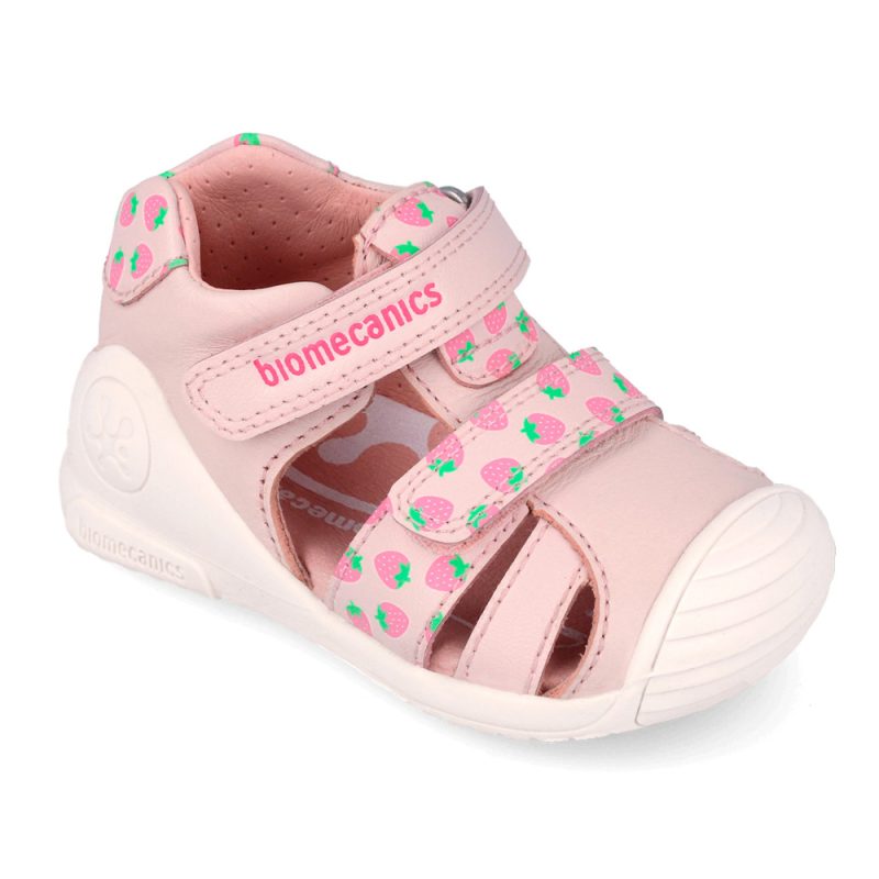 Biomecanics παπουτσοπέδιλο με αυτοκόλλητο. Αυτό το παπουτσοπέδιλο έχει σχεδιαστεί ειδικά για τα πρώτα βήματα. Το εσωτερικό αποτελείται από δέρμα και δερμάτινο,ανατομικό,αντιβακτηριακό πατάκι καθώς και μια σταθερή προσθήκη στήριξης στον αστράγαλο. Η εξωτερική σόλα αποτελείται από λάστιχο.