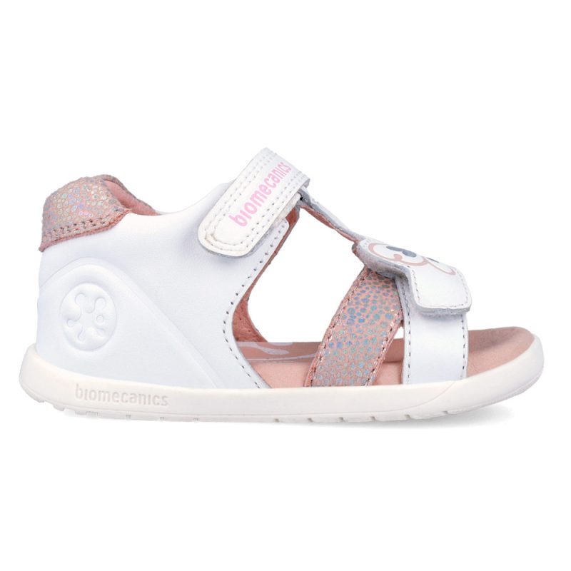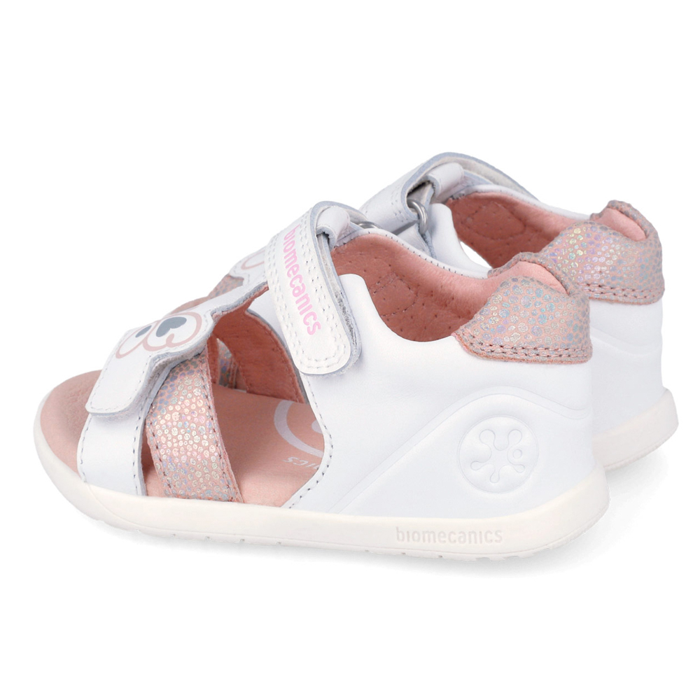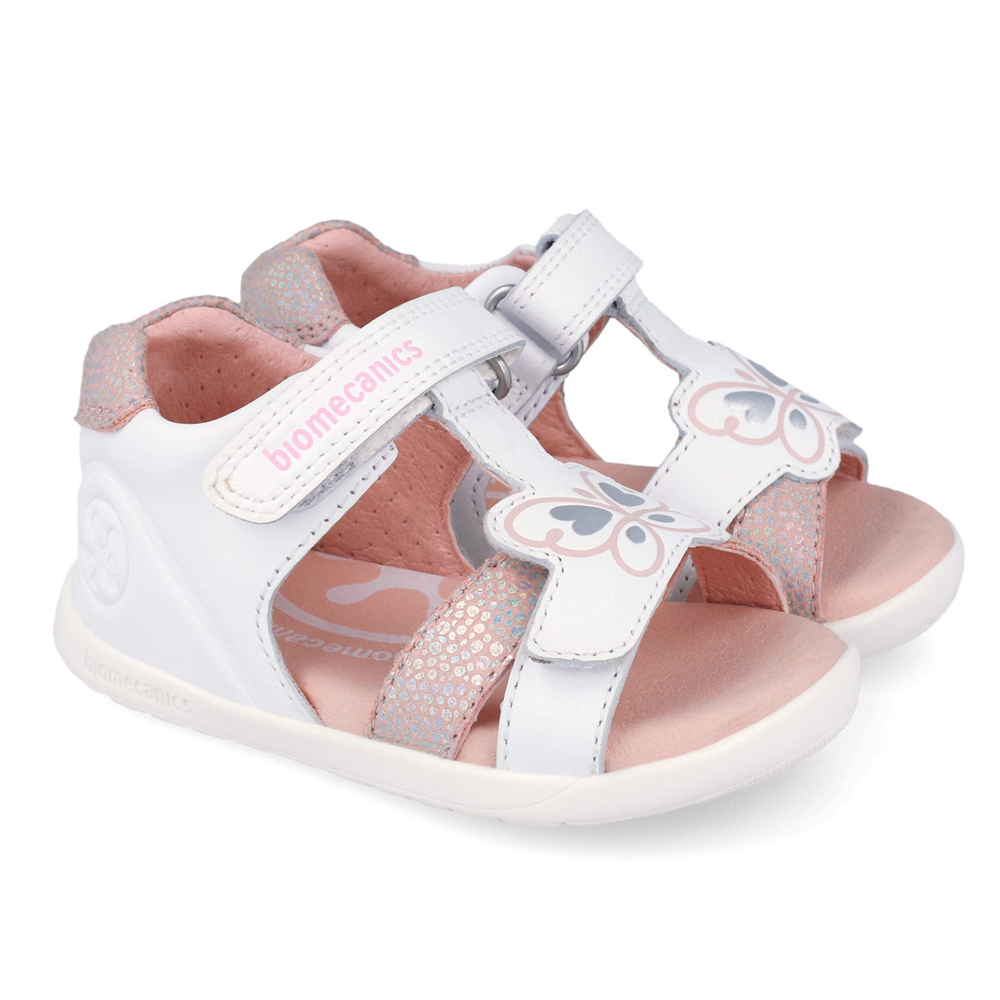 Biomecanics πέδιλο με αυτοκόλλητο. Αυτό το πέδιλο έχει σχεδιαστεί ειδικά για τα πρώτα βήματα. Το εσωτερικό αποτελείται από δέρμα και δερμάτινο,ανατομικό,αντιβακτηριακό πατάκι καθώς και μια σταθερή προσθήκη στήριξης στον αστράγαλο. Η εξωτερική σόλα αποτελείται από λάστιχο.