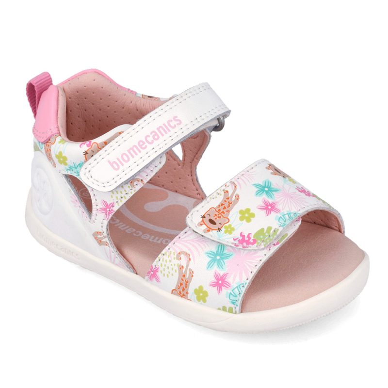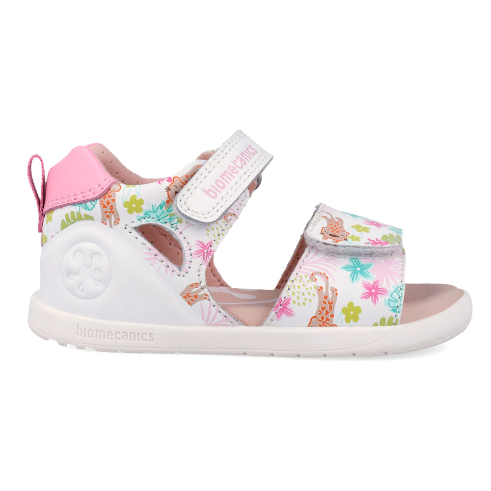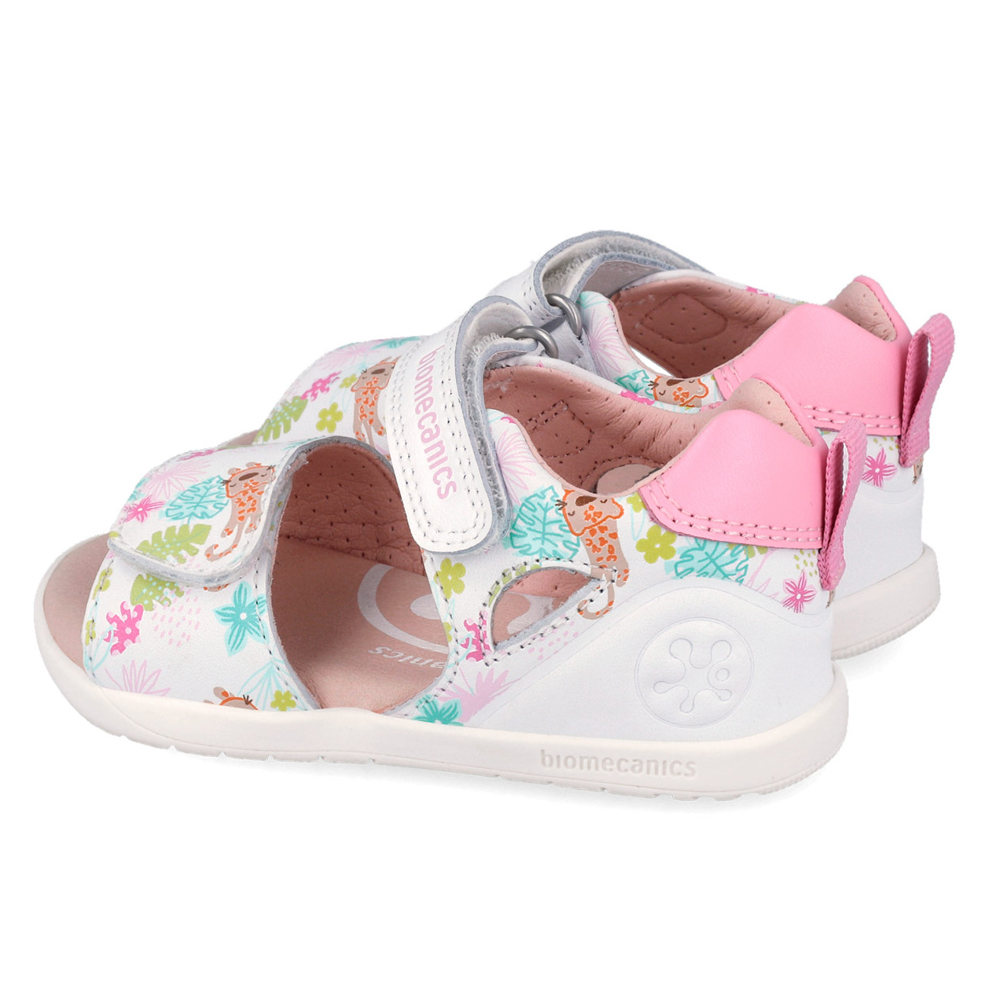 Biomecanics πέδιλο με αυτοκόλλητο. Αυτό το πέδιλο έχει σχεδιαστεί ειδικά για τα πρώτα βήματα. Το εσωτερικό αποτελείται από δέρμα και δερμάτινο,ανατομικό,αντιβακτηριακό πατάκι καθώς και μια σταθερή προσθήκη στήριξης στον αστράγαλο. Η εξωτερική σόλα αποτελείται από λάστιχο.