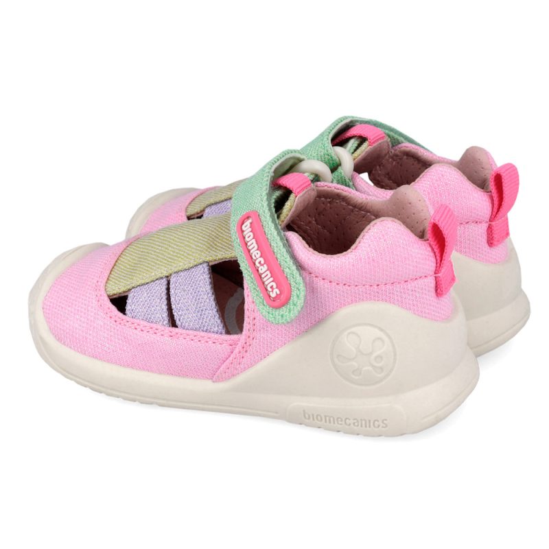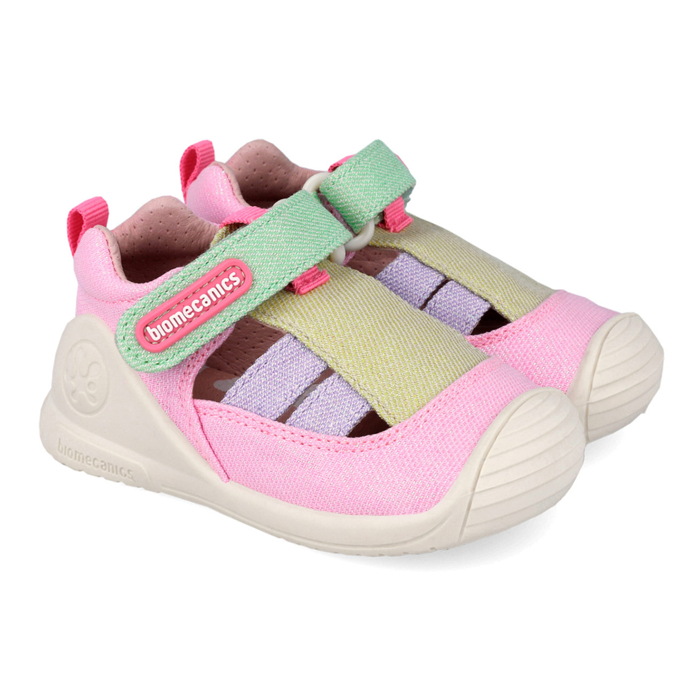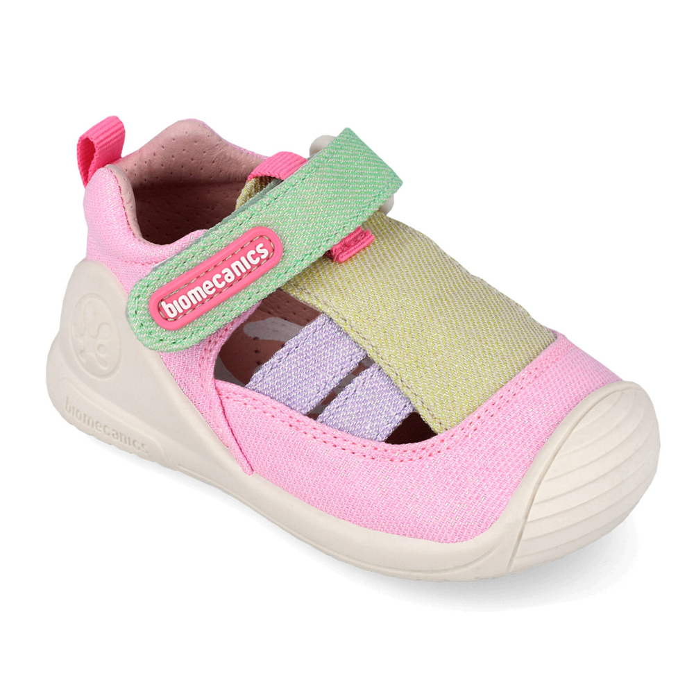 Biomecanics παπουτσοπέδιλο με αυτοκόλλητο. Αυτό το παπουτσοπέδιλο έχει σχεδιαστεί ειδικά για τα πρώτα βήματα. Το εσωτερικό αποτελείται από δέρμα και δερμάτινο,ανατομικό,αντιβακτηριακό πατάκι καθώς και μια σταθερή προσθήκη στήριξης στον αστράγαλο. Η εξωτερική σόλα αποτελείται από λάστιχο.