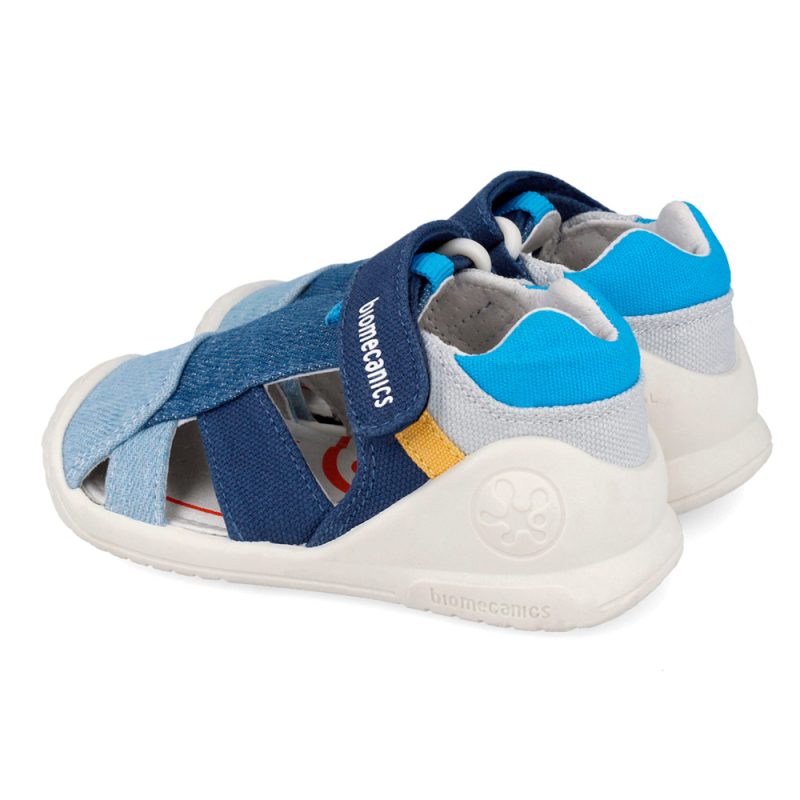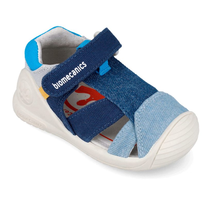 Biomecanics παπουτσοπέδιλο με αυτοκόλλητο. Αυτό το παπουτσοπέδιλο έχει σχεδιαστεί ειδικά για τα πρώτα βήματα. Το εσωτερικό αποτελείται από δέρμα και δερμάτινο,ανατομικό,αντιβακτηριακό πατάκι καθώς και μια σταθερή προσθήκη στήριξης στον αστράγαλο. Η εξωτερική σόλα αποτελείται από λάστιχο.