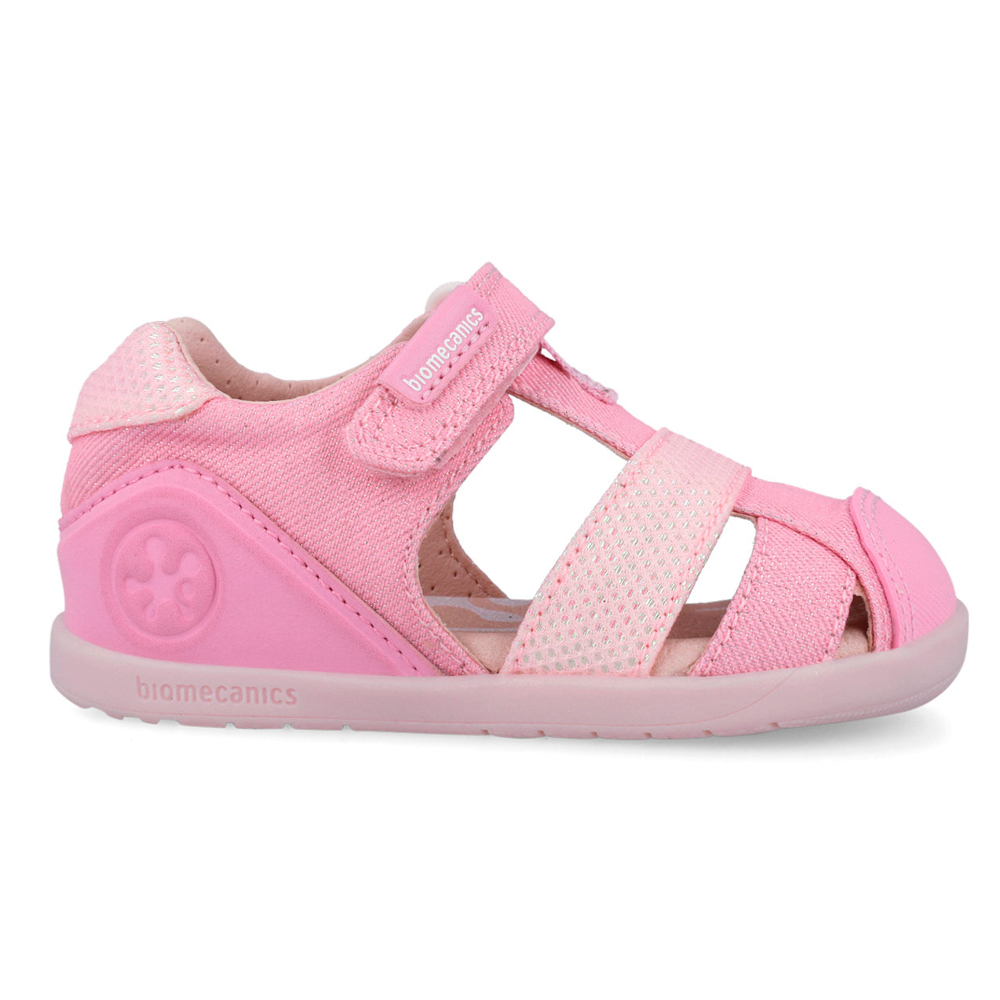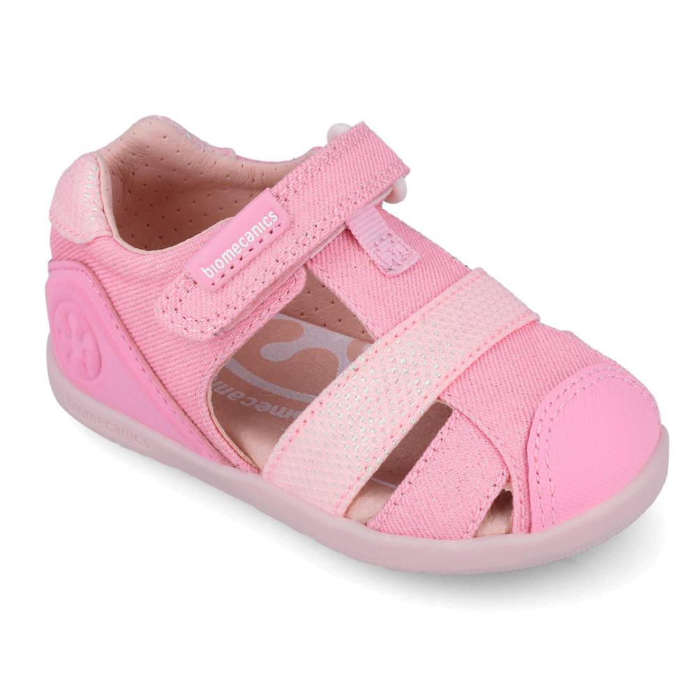 Biomecanics παπουτσοπέδιλο με αυτοκόλλητο. Αυτό το παπουτσοπέδιλο έχει σχεδιαστεί ειδικά για τα πρώτα βήματα. Το εσωτερικό αποτελείται από δέρμα και δερμάτινο,ανατομικό,αντιβακτηριακό πατάκι καθώς και μια σταθερή προσθήκη στήριξης στον αστράγαλο. Η εξωτερική σόλα αποτελείται από λάστιχο.