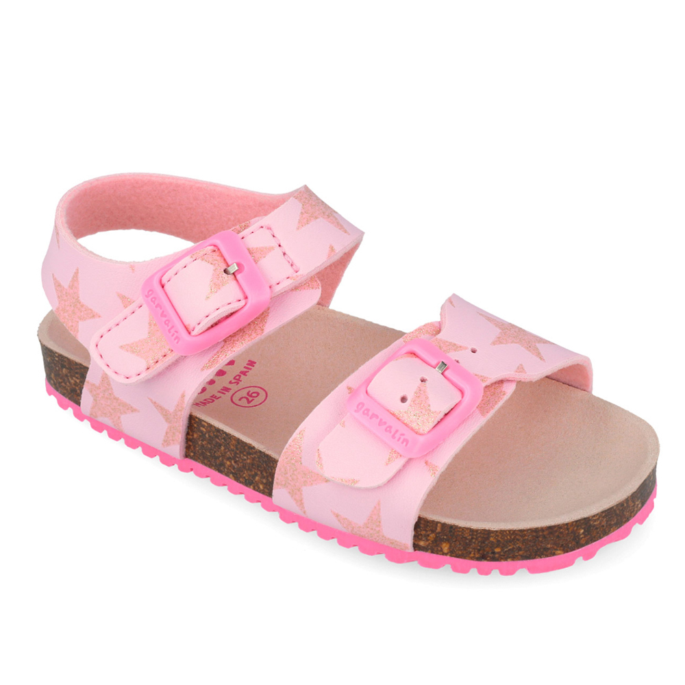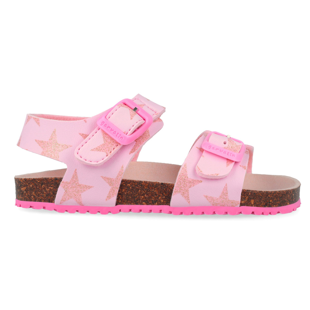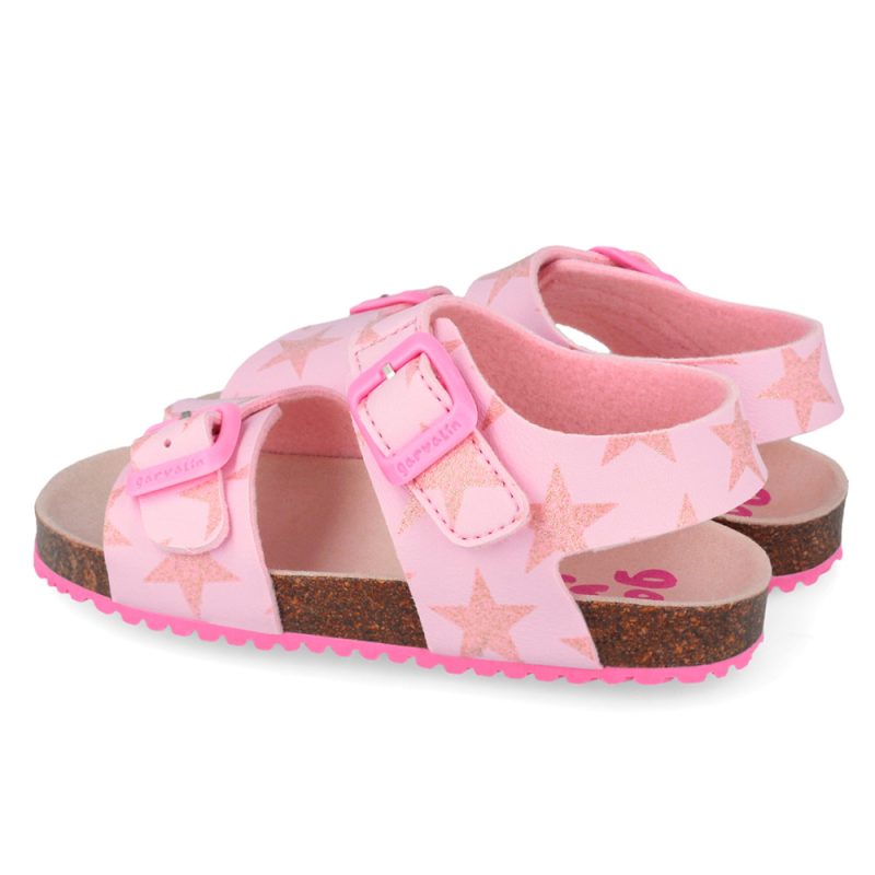 Garvalin πέδιλο με αυτοκόλλητο. Διαθέτει αστέρια περιμετρικά. Το εσωτερικό αποτελείται από ύφασμα και δερμάτινο,ανατομικό πατάκι. Η εξωτερική σόλα αποτελείται από λάστιχο.