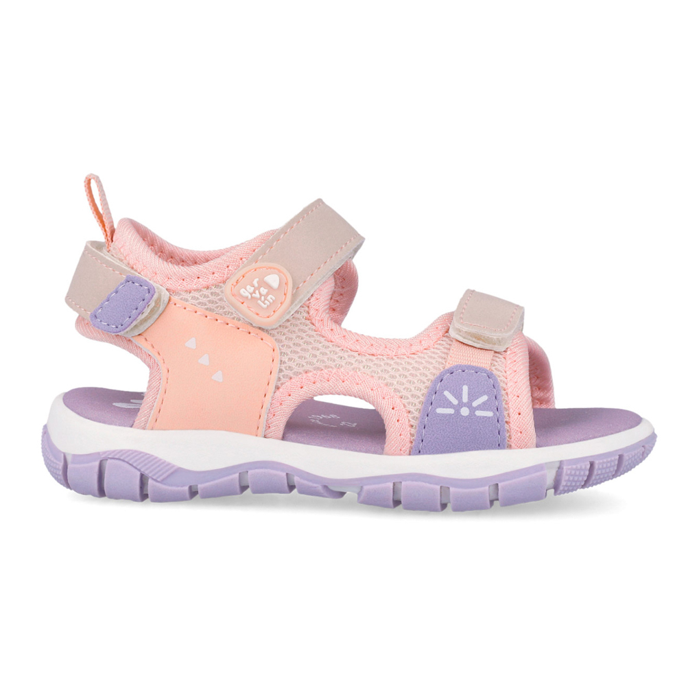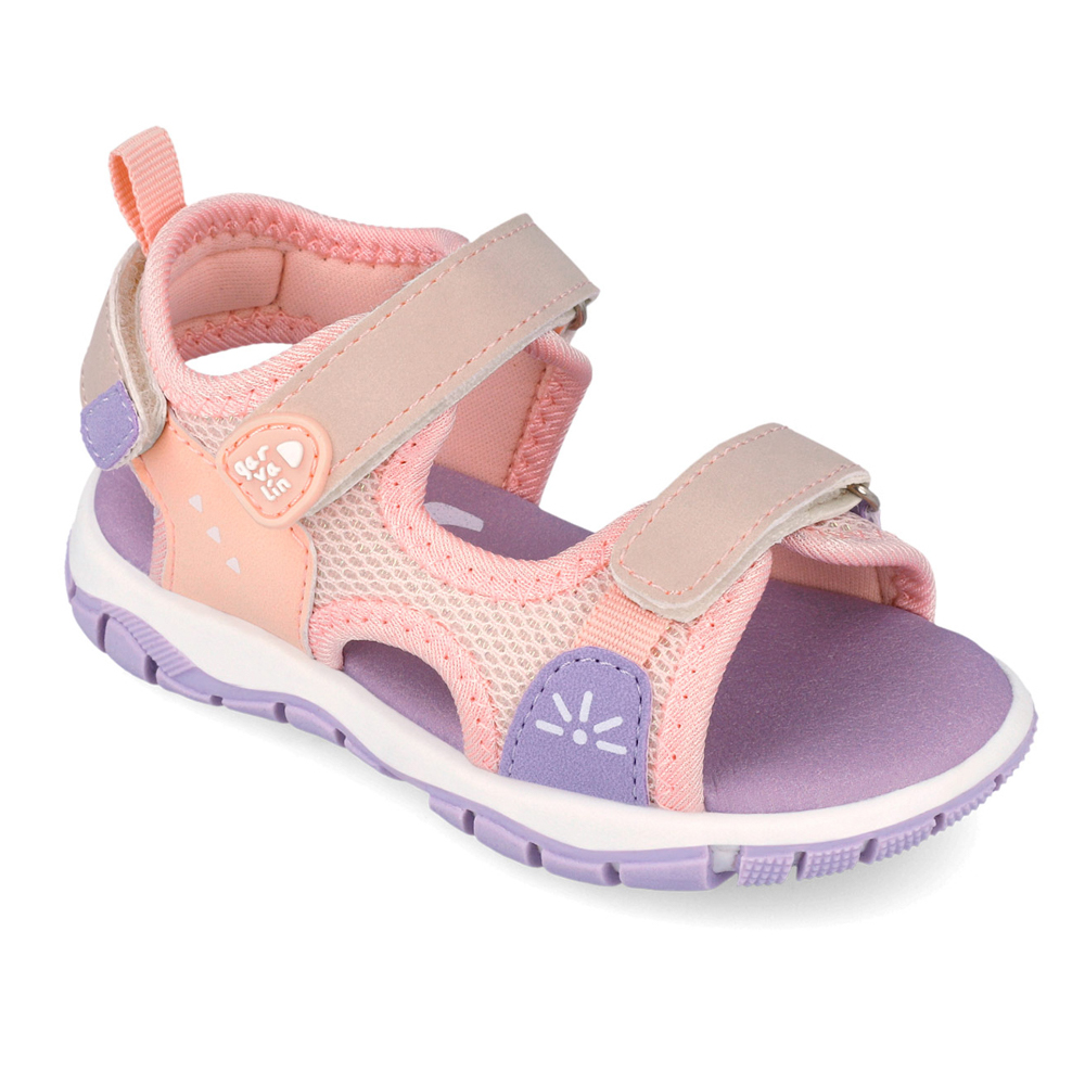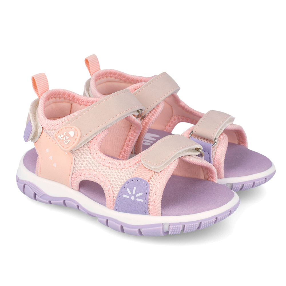 Garvalin πέδιλο με αυτοκόλλητα. Διαθέτει πολύχρωμες λεπτομέρειες περιμετρικά. Το εσωτερικό αποτελείται από ύφασμα. Η εξωτερική σόλα αποτελείται από λάστιχο.