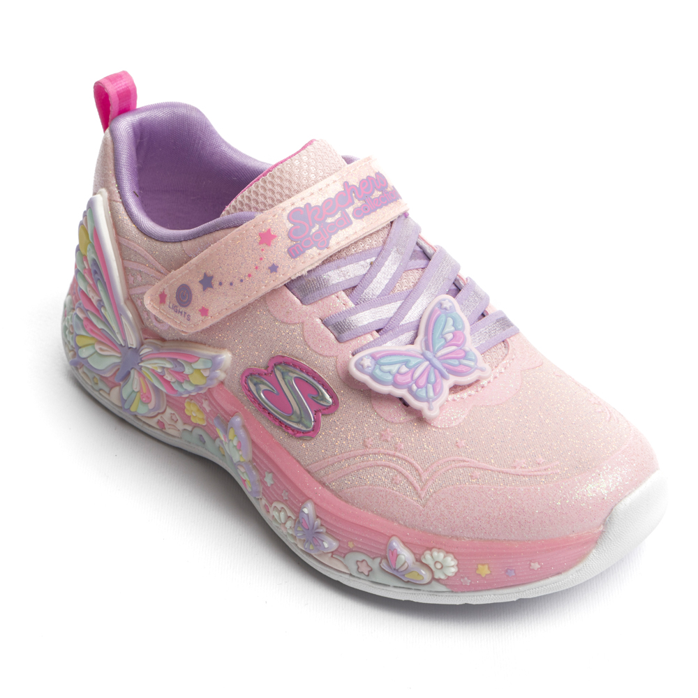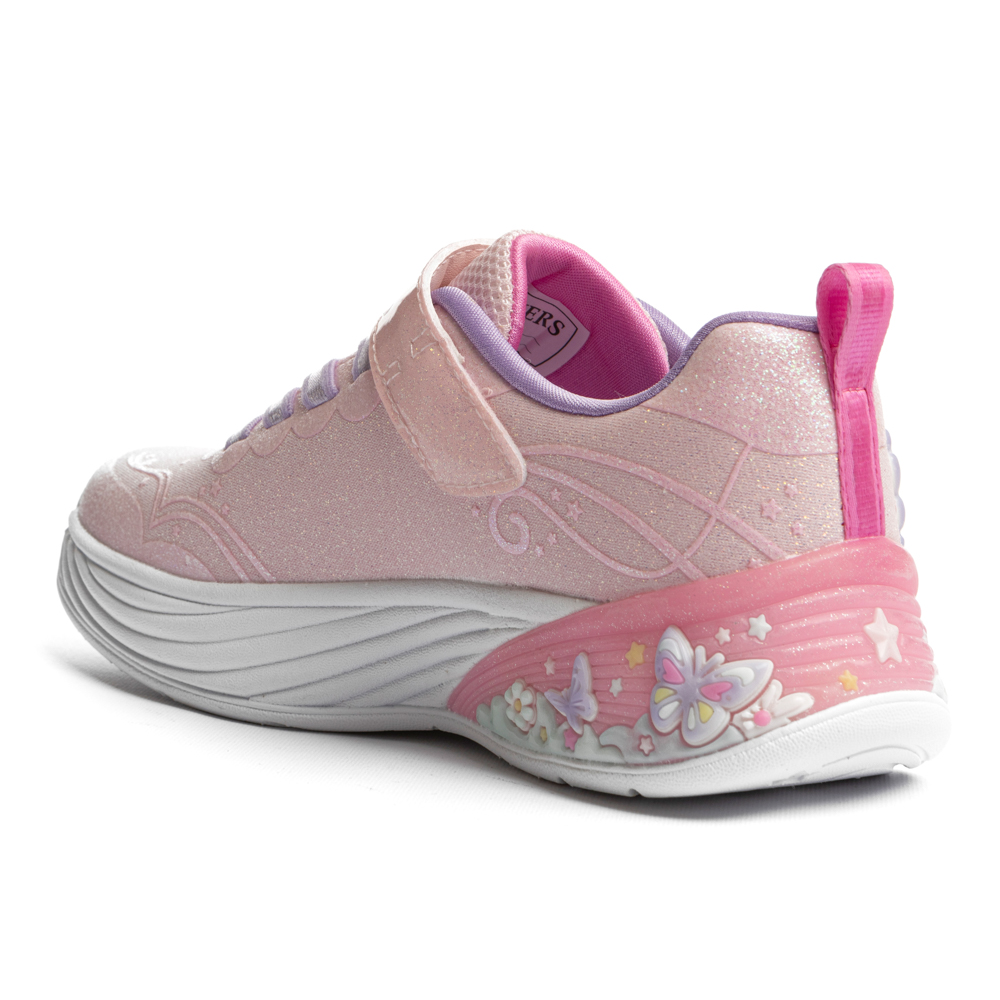 Skechers sneaker με αυτοκόλλητο και ελαστικά κορδόνια. Διαθέτει μια πεταλούδα στο πλάι και φωτάκια στη σόλα. Το εσωτερικό αποτελείται από ύφασμα. Η εξωτερική σόλα αποτελείται από λάστιχο.