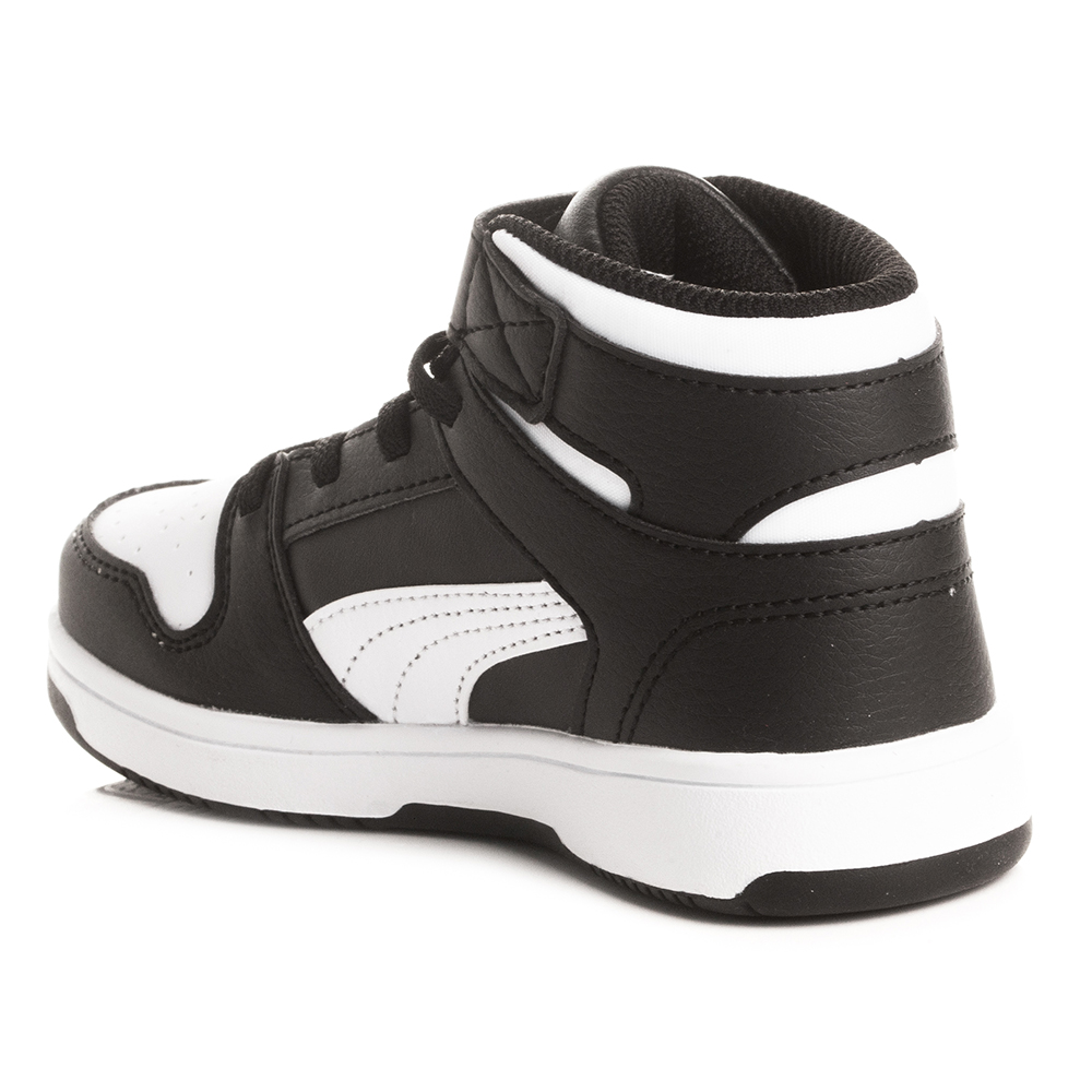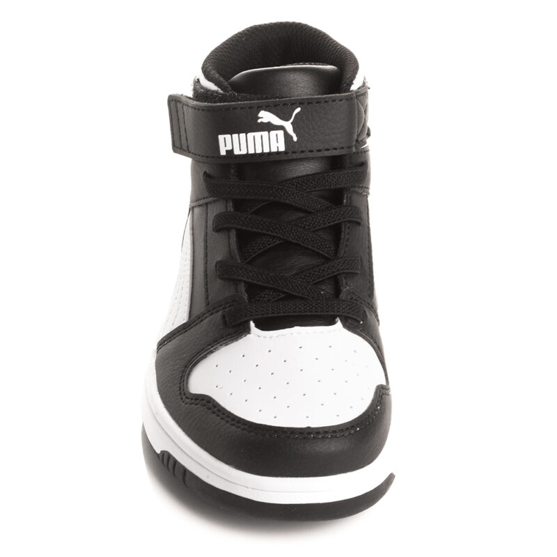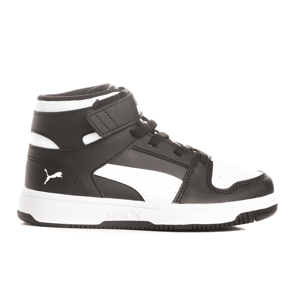 Puma Rebound μποτάκι με αυτοκόλλητο και ελαστικά κορδόνια.Το εσωτερικό αποτελείται από ύφασμα και υφασμάτινο πατάκι.Η εξωτερική σόλα αποτελείται από λάστιχο.