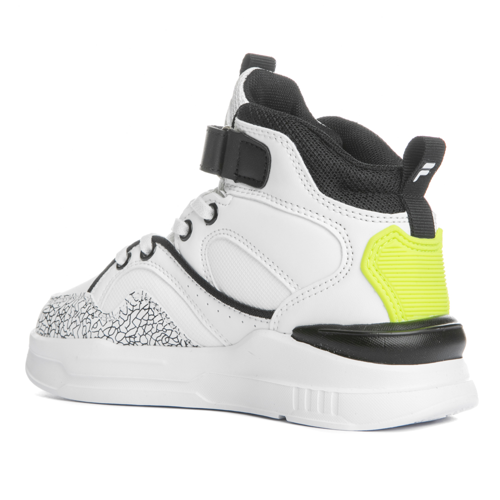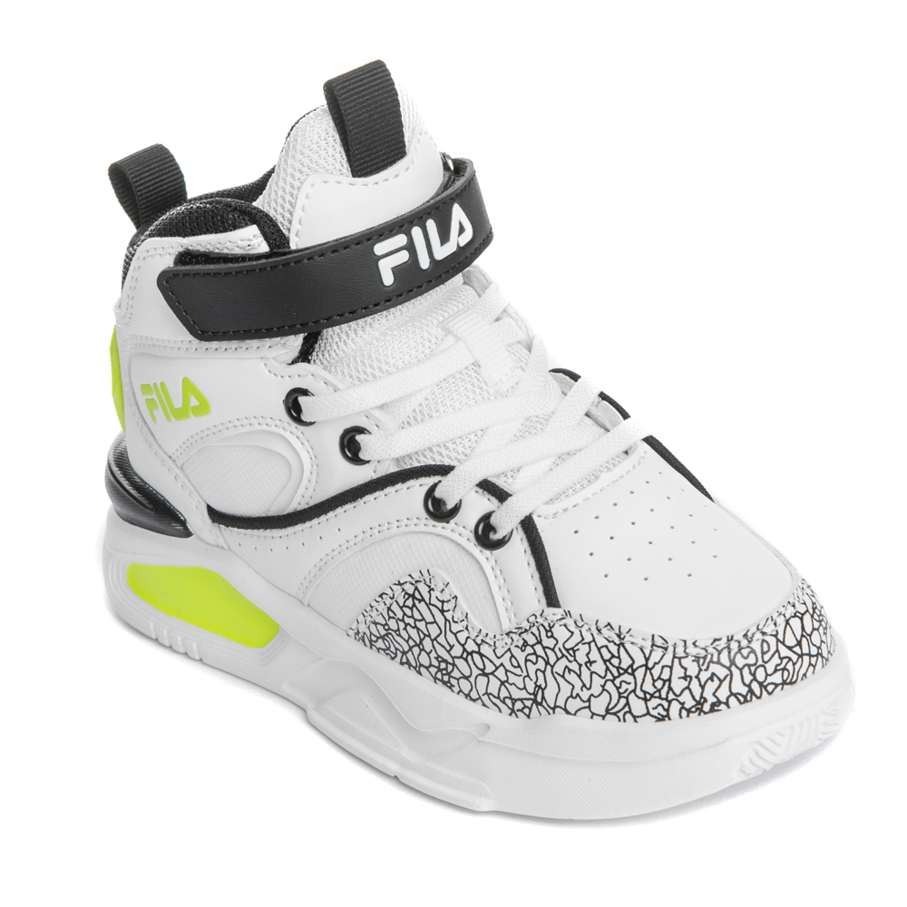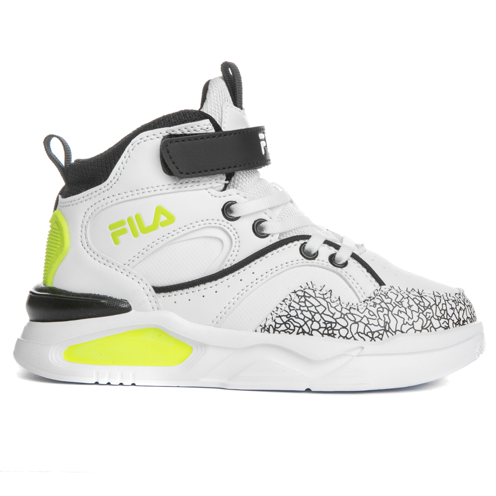 Fila Memory Sonic με αυτοκόλλητο και ελαστικά κορδόνια. Διαθέτει κίτρινες και μαύρες λεπτομέρειες. Το εσωτερικό αποτελείται από ύφασμα. Η εξωτερική σόλα αποτελείται από λάστιχο.
