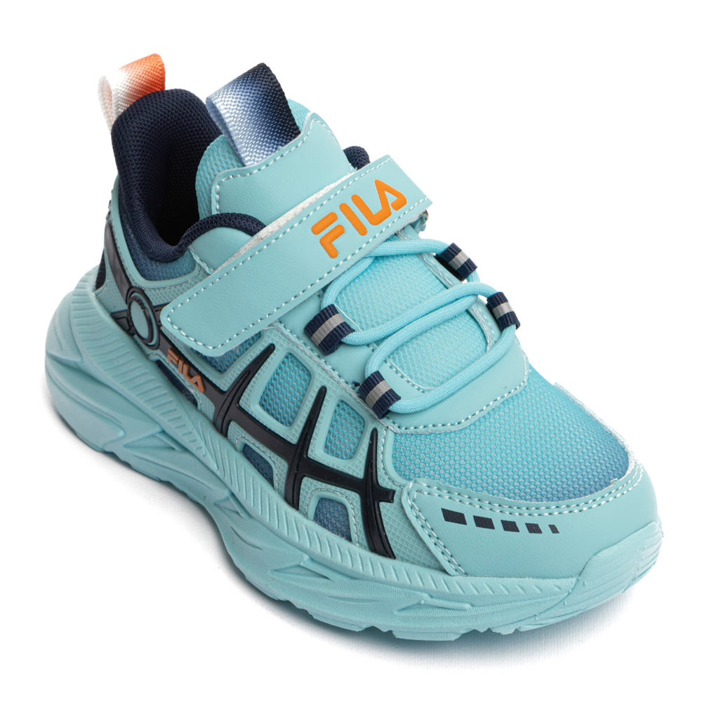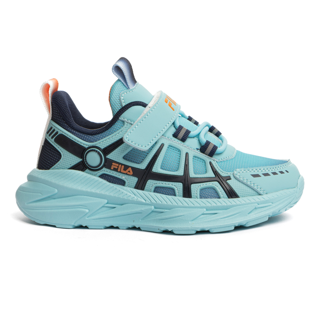 Fila Memory Motion με αυτοκόλλητο και ελαστικά κορδόνια. Το εσωτερικό αποτελείται από ύφασμα και ανατομικό πατάκι. Η εξωτερική σόλα αποτελείται από λάστιχο.