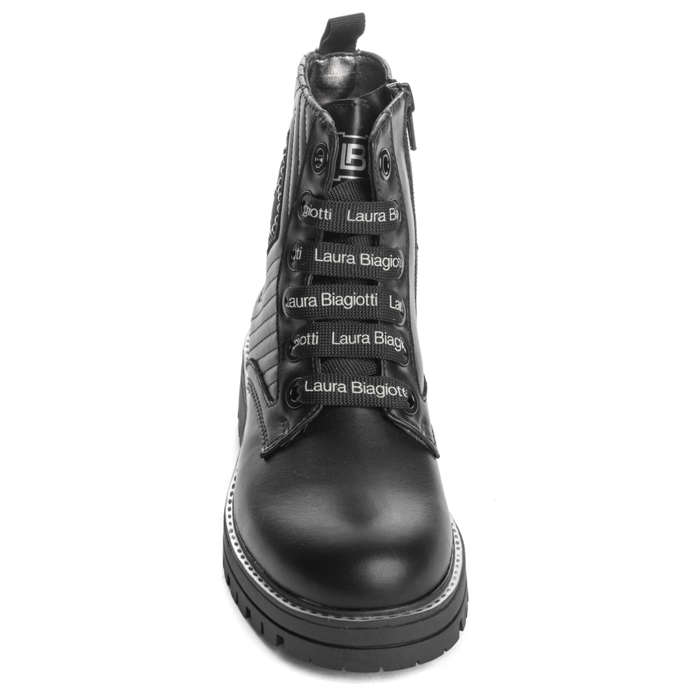 Laura Biagiotti αρβυλάκι με κορδόνια και φερμουάρ.Διαθέτει το λογότυπο του brand στο πλάι και τα κορδόνια.Το εσωτερικό μέρος αποτελείται από ύφασμα και δερμάτινο,ανατομικό πατάκι.Η εξωτερική σόλα αποτελείται από λάστιχο.