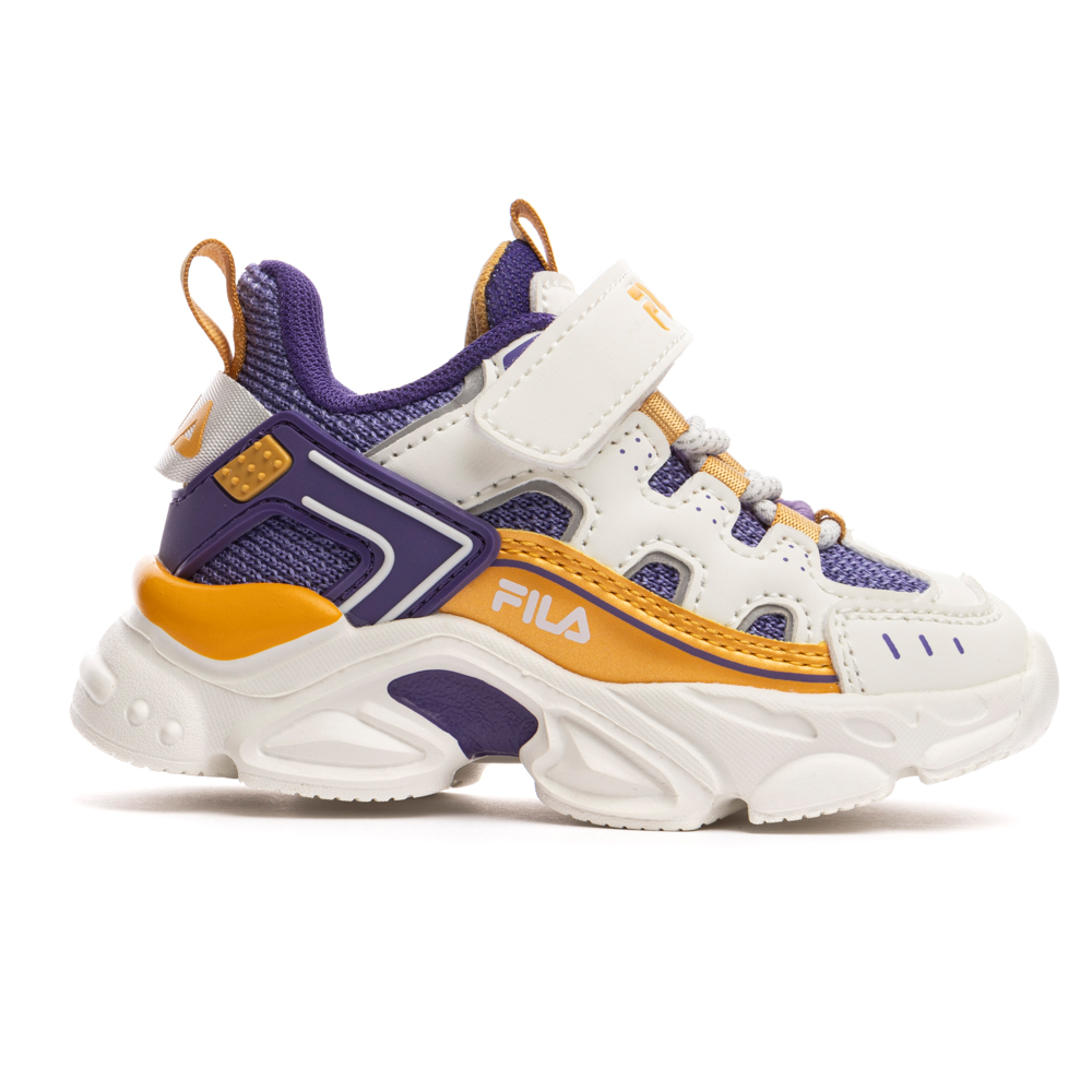 Fila Memory Spinel με αυτοκόλλητο και ελαστικά κορδόνια. Το εσωτερικό αποτελείται από ύφασμα και ανατομικό πατάκι. Η εξωτερική σόλα αποτελείται από λάστιχο.