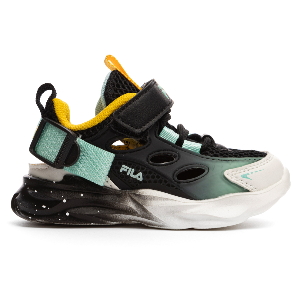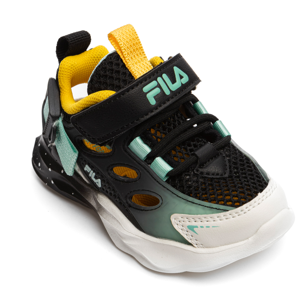 Fila Memory Wave με αυτοκόλλητο και ελαστικά κορδόνια. Το εσωτερικό αποτελείται από ύφασμα και ανατομικό πατάκι. Η εξωτερική σόλα αποτελείται από λάστιχο.