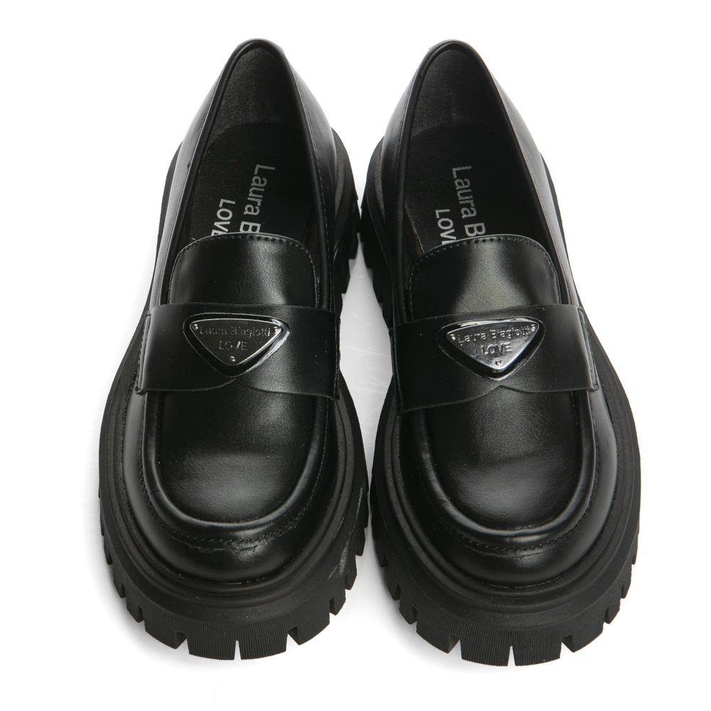 Laura Biagiotti loafer με το λογότυπο του brand μπροστά. Το εσωτερικό αποτελείται από δέρμα. Η εξωτερική σόλα αποτελείται από λάστιχο.