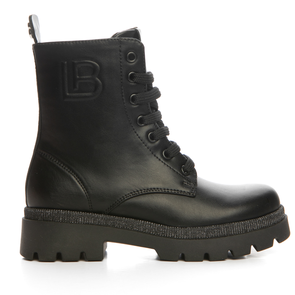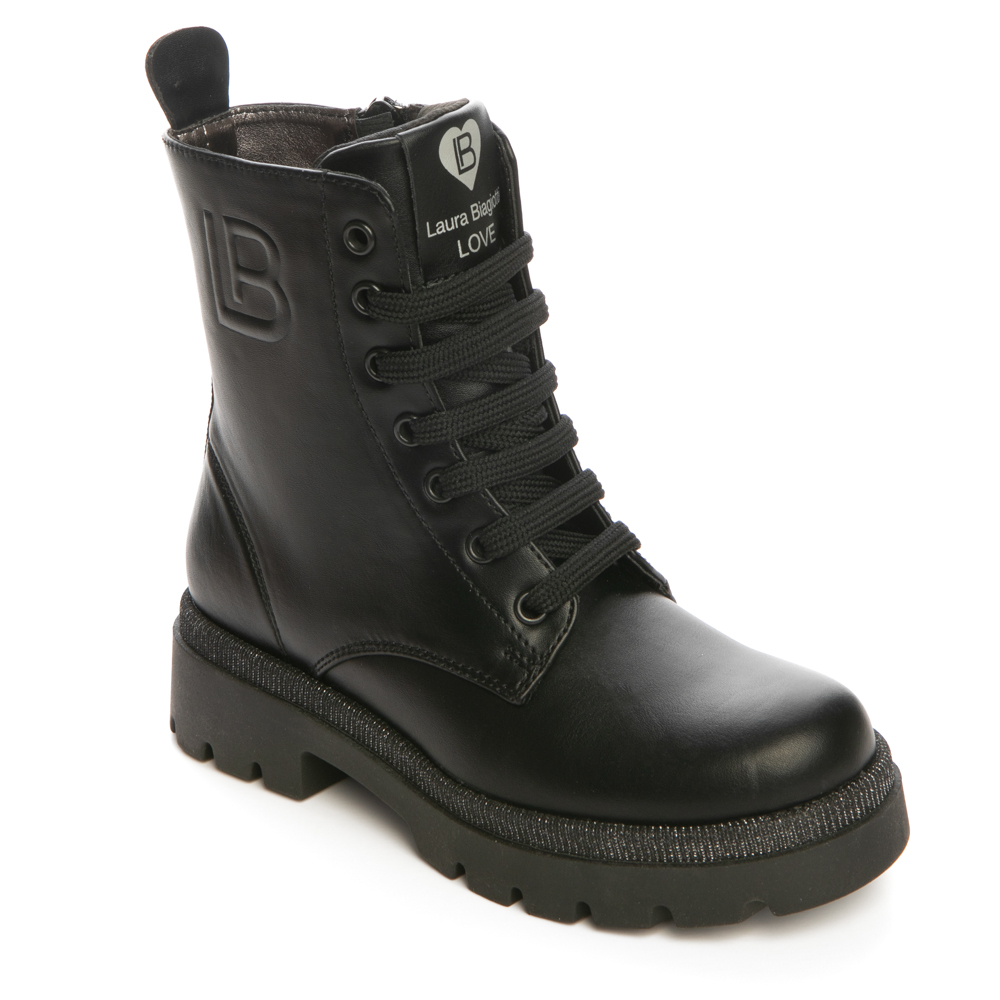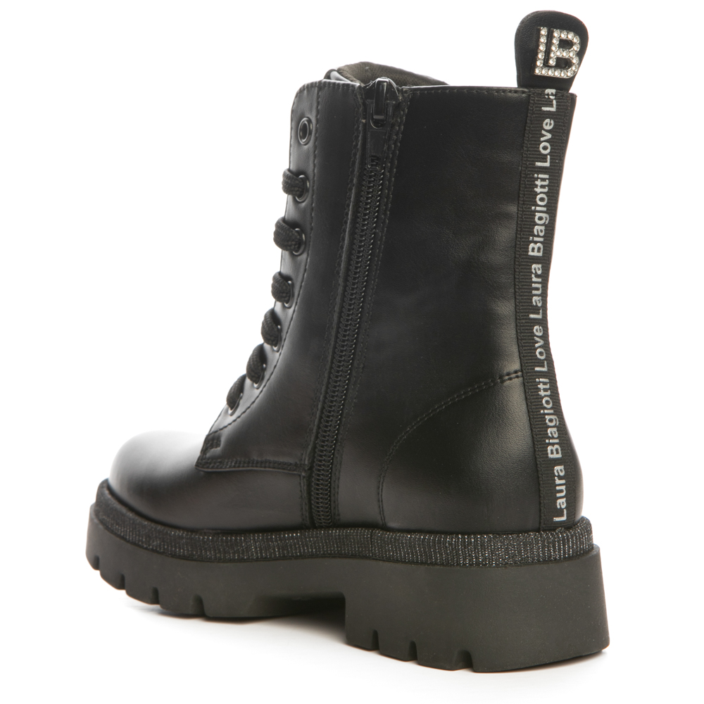 Laura Biagiotti μποτάκι με το λογότυπο του brand στο πλάι. Το εσωτερικό αποτελείται από οικολογική γούνα. Η εξωτερική σόλα αποτελείται από λάστιχο.