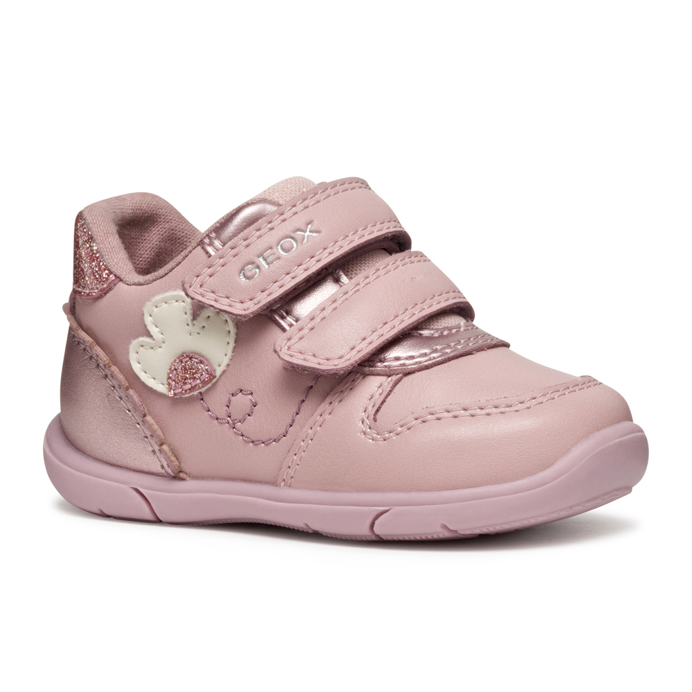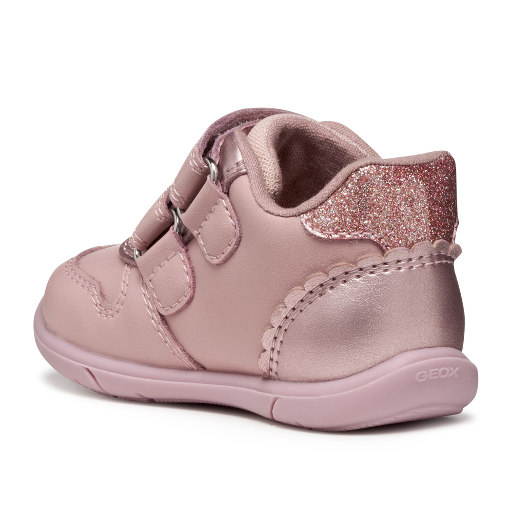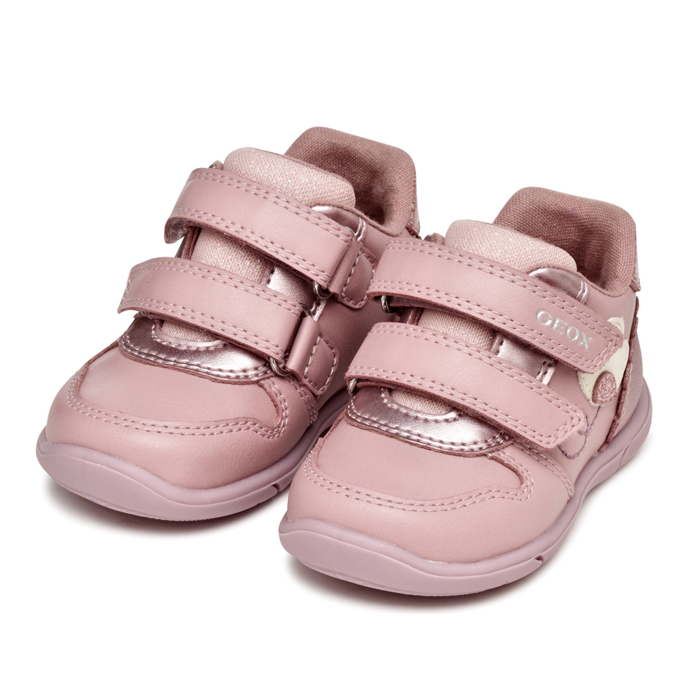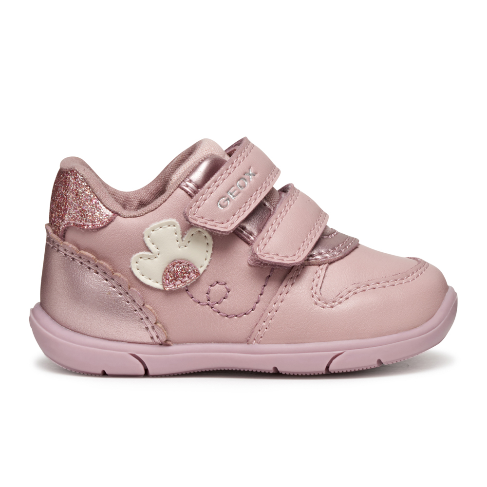Geox μποτάκι με αυτοκόλλητα. Διαθέτει διακοσμητικό στο πλάι και γκλίτερ στο πίσω μέρος. Το εσωτερικό αποτελείται από ύφασμα και δερμάτινο,ανατομικό,αντιβακτηριακό πατάκι. Η εξωτερική σόλα αποτελείται από λάστιχο.