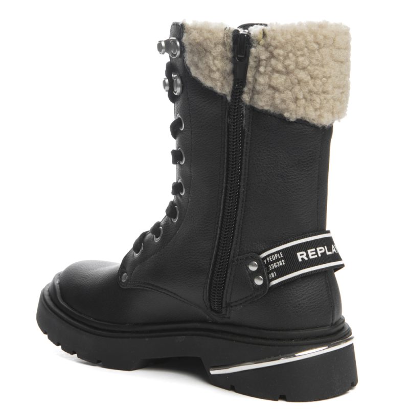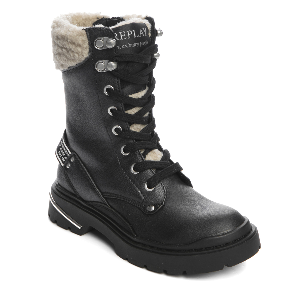 Replay αρβυλάκι με κορδόνια και φερμουάρ. Διαθέτει γούνα στο επάνω μέρος. Το εσωτερικό αποτελείται από ύφασμα. Η εξωτερική σόλα αποτελείται από λάστιχο.