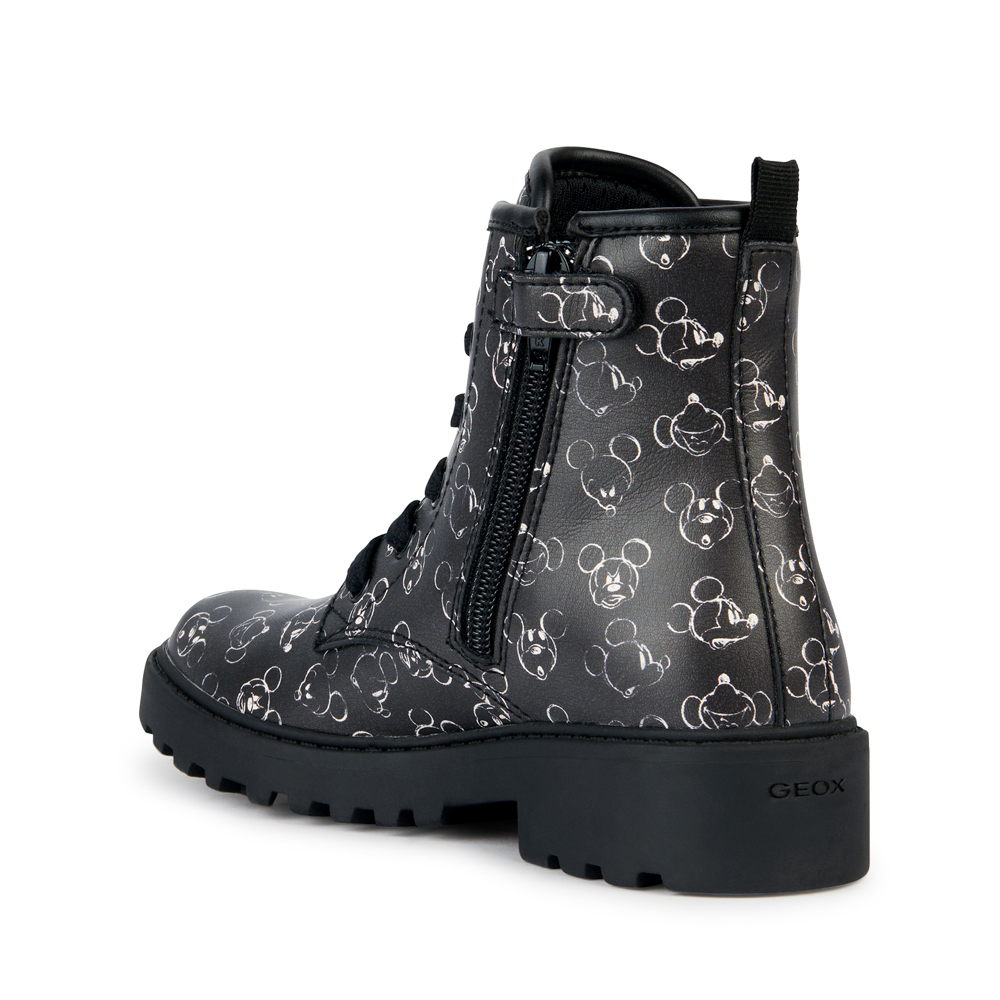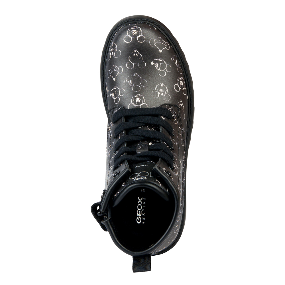 Geox αρβυλάκι με κορδόνια και φερμουάρ.Διαθέτει τη Minnie περιμετρικά.Το εσωτερικό αποτελείται από ύφασμα και υφασμάτινο πατάκι.Η εξωτερική σόλα αποτελείται από λάστιχο.