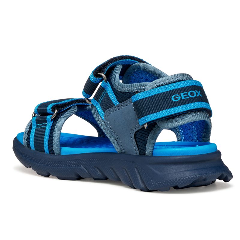 Geox πέδιλο με αυτοκόλλητα. Αυτό το αδιάβροχο πέδιλο αποτελείται από ύφασμα. Η εξωτερική σόλα αποτελείται από λάστιχο.