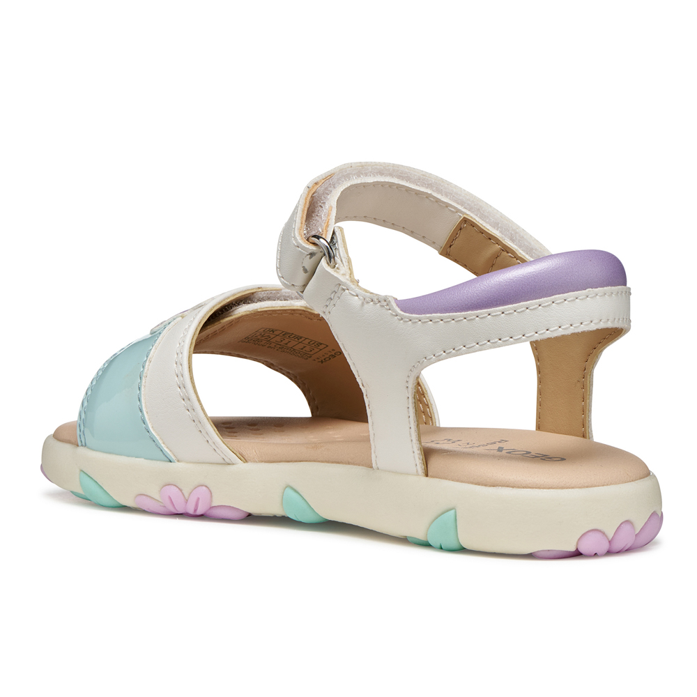 Geox πέδιλο με αυτοκόλλητα. Διαθέτει ένα αστέρι μπροστά. Το εσωτερικό αποτελείται από δέρμα και δερμάτινο πατάκι. Η εξωτερική σόλα αποτελείται από λάστιχο.