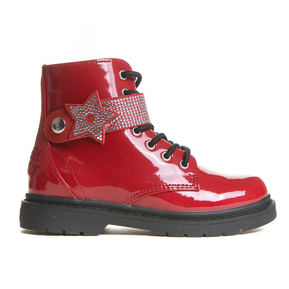 Lelli Kelly αρβυλάκι με κορδόνια και φερμουάρ.Διαθέτει μια στρασένια,προσθαφαιρούμενη ζώνη στο πάνω μέρος.Το εσωτερικό αποτελείται από ύφασμα και δερμάτινο πατάκι.Η εξωτερική σόλα αποτελείται από λάστιχο.