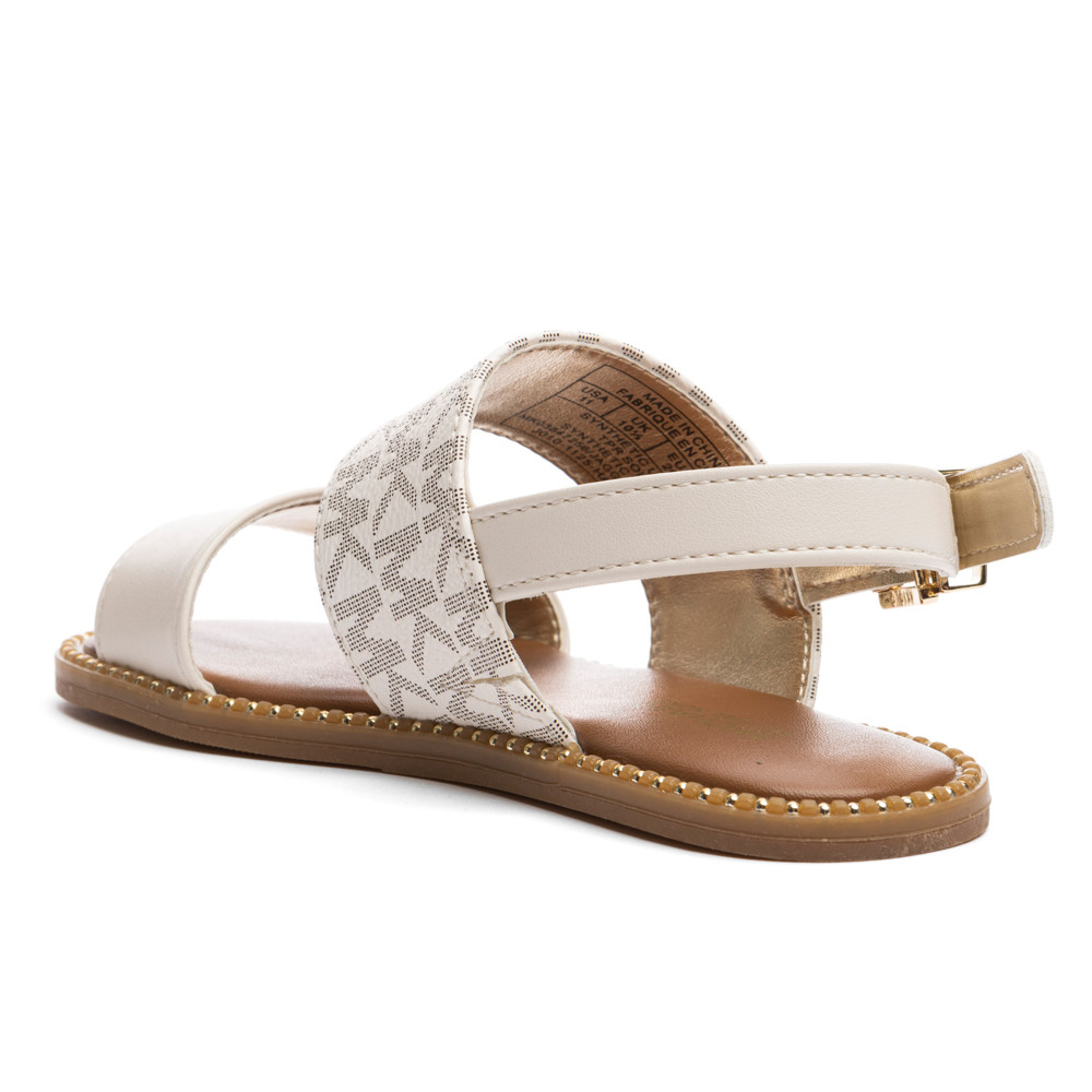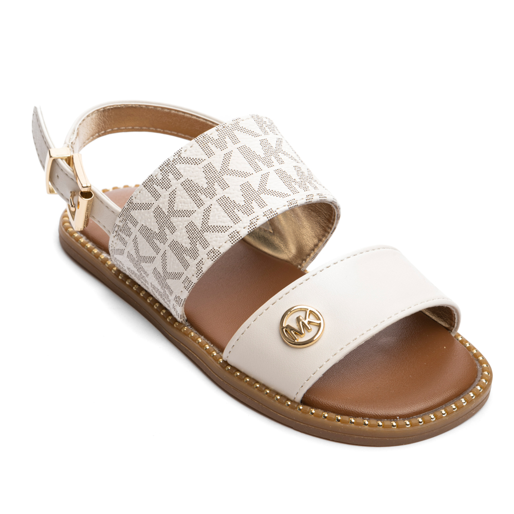 Michael Kors πέδιλο με ρυθμιζόμενο κούμπωμα. Διαθέτει το λογότυπο του brand περιμετρικά. Το εσωτερικό αποτελείται από δέρμα και ύφασμα. Η εξωτερική σόλα αποτελείται από λάστιχο.