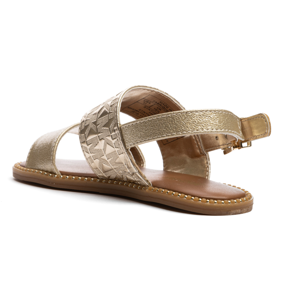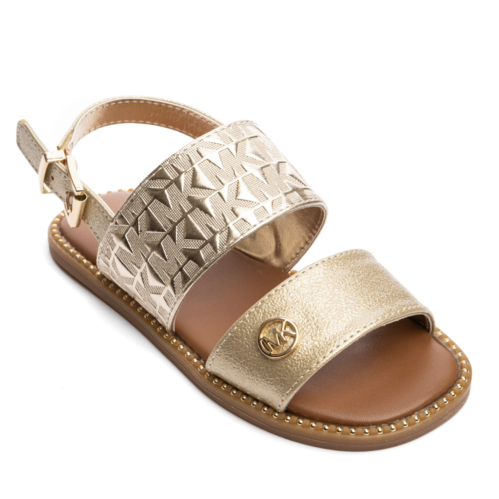 Michael Kors πέδιλο με ρυθμιζόμενο κούμπωμα. Διαθέτει το λογότυπο του brand περιμετρικά. Το εσωτερικό αποτελείται από δέρμα και ύφασμα. Η εξωτερική σόλα αποτελείται από λάστιχο.