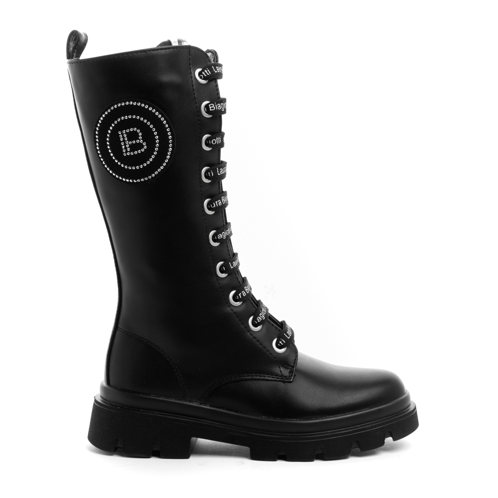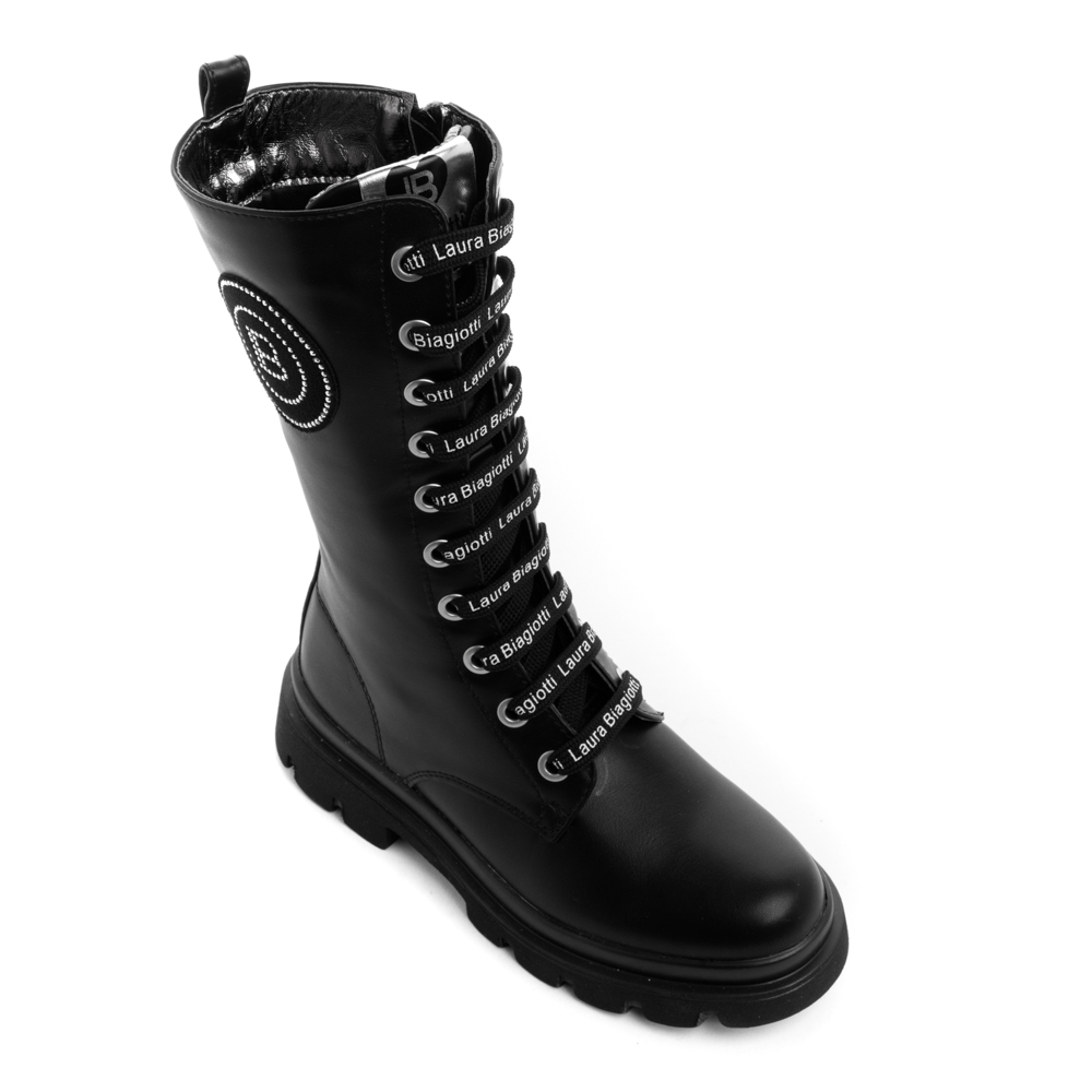 Laura Biagiotti boot with laces and zipper.It features the brand s logo on the side.The inner part consists of textile and a leather insole.The outsole consists of rubber.