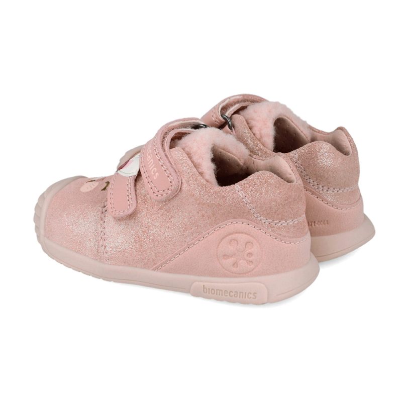 Biomecanics boot with double velcro. It features a bunny on the front.The inner part consists of leather and a leather,anatomic,antibacterial insole. The outsole consists of rubber.
