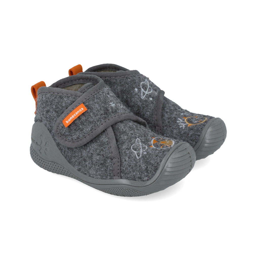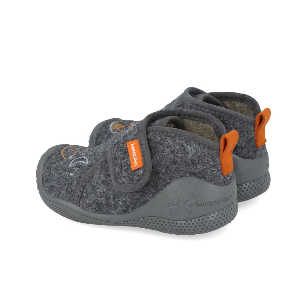 Biomecanics slipper with velcro. It features the space on the front. The inner part consists of textile and a leather,anatomic,antibacterial insole. The outsole consists of rubber.