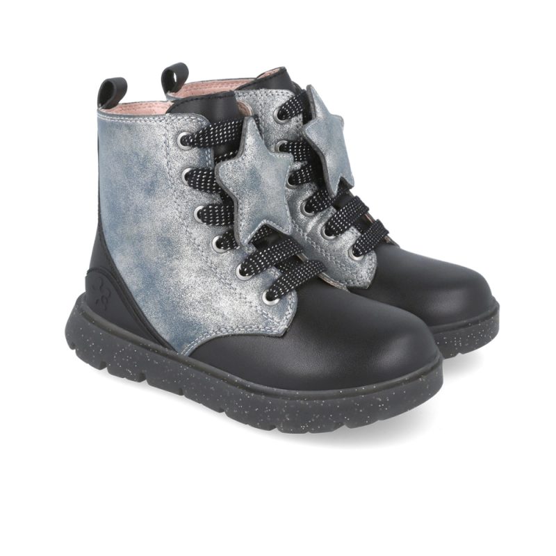 Biomecanics boot with laces and zipper. It features a star on the laces. The inner part consists of leather and a leather,anatomic,antibacterial insole. The outsole consists of rubber.