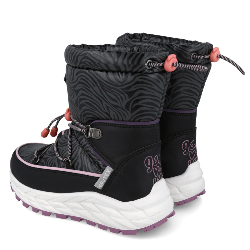 Garvalin boot with velcro. It features waterproof technology and fur on the inside. The outsole consists of non slip rubber.
