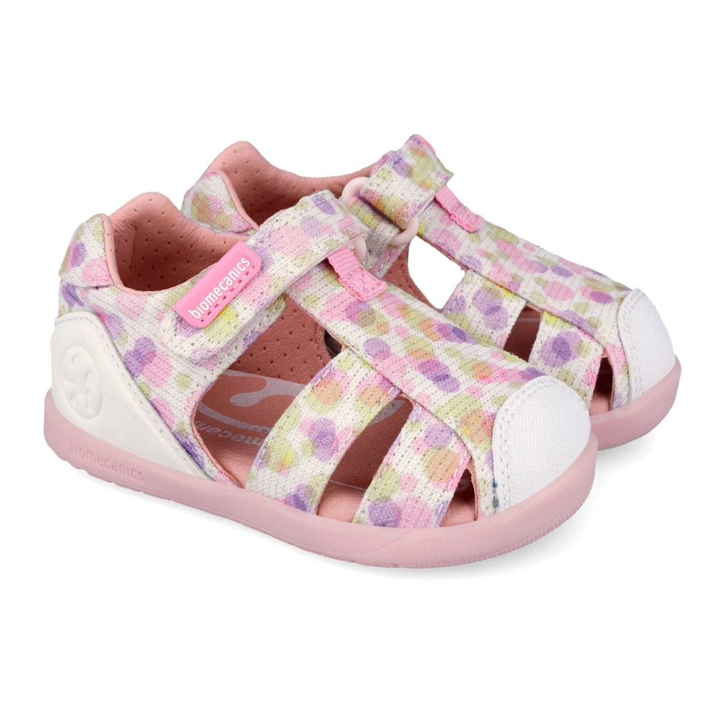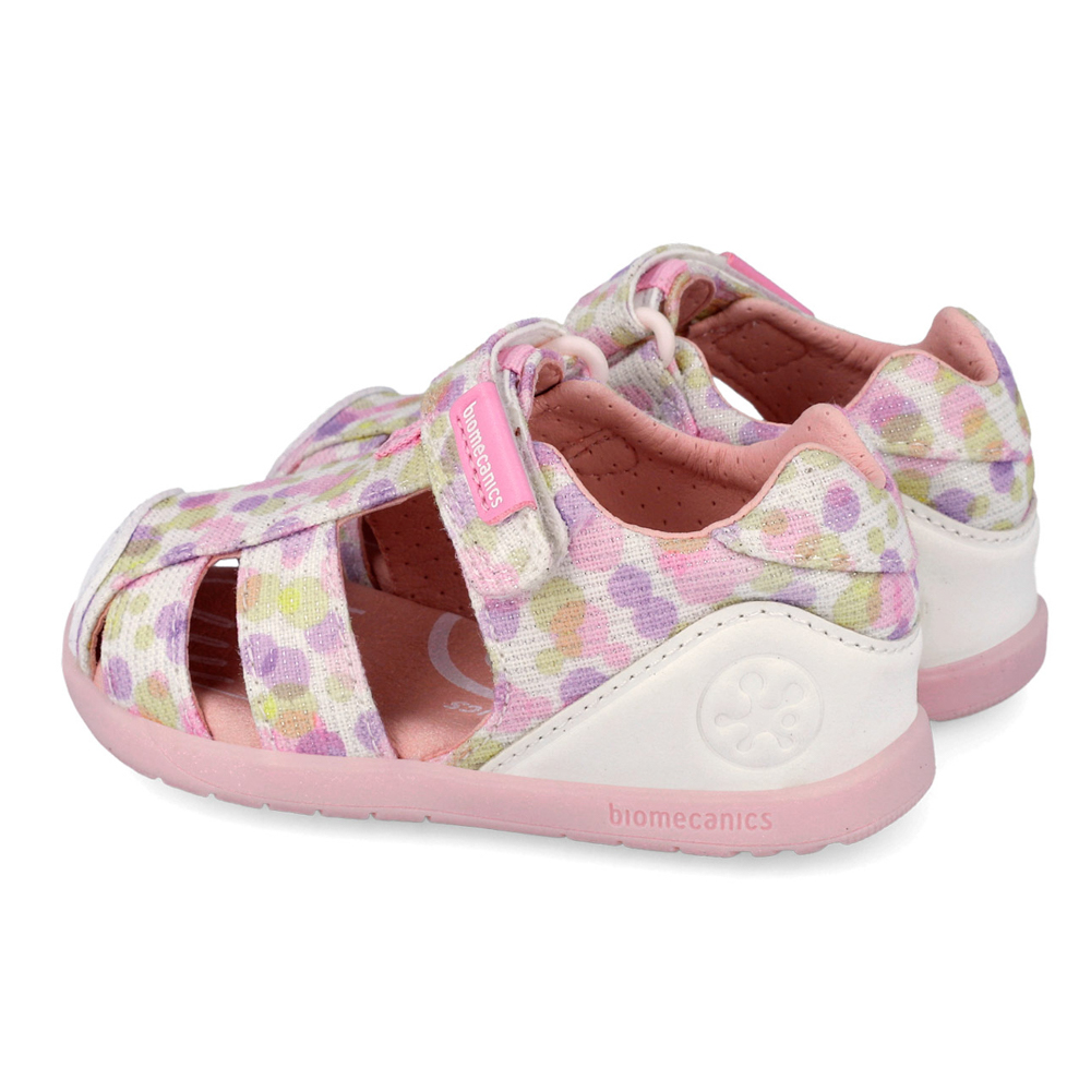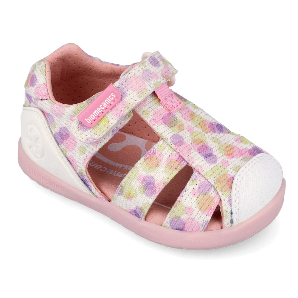 Biomecanics sandal with velcro. This sandal is specifically designed for the first steps. The inner part consists of leather and a leather,anatomic,antibacterial insole with a very stable structure on the ankle. The outsole consists of rubber.