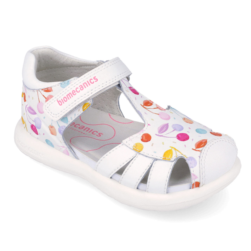 Biomecanics sandal with velcro. This sandal is specifically designed for maximum comfort. The inner part consists of leather and a leather,anatomic,antibacterial insole with a very stable structure on the ankle. The outsole consists of rubber.