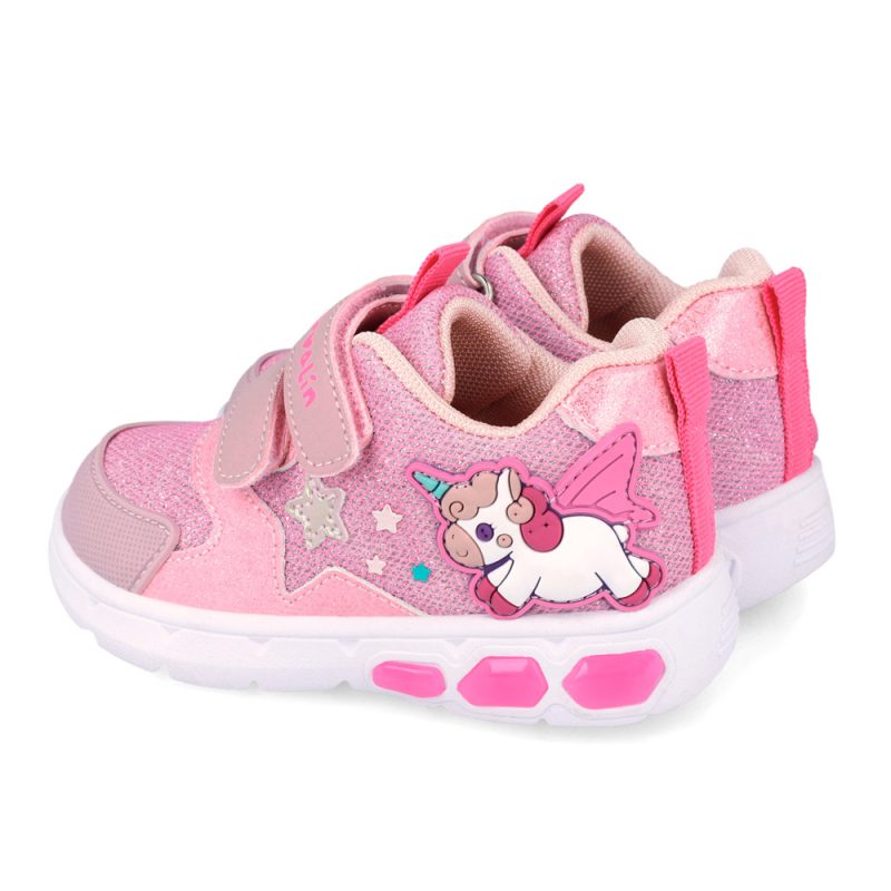 Garvalin sneaker with double velcro. It features a unicorn on the side and lights in the outsole. The inner part consists of textile. The outsole consists of rubber.