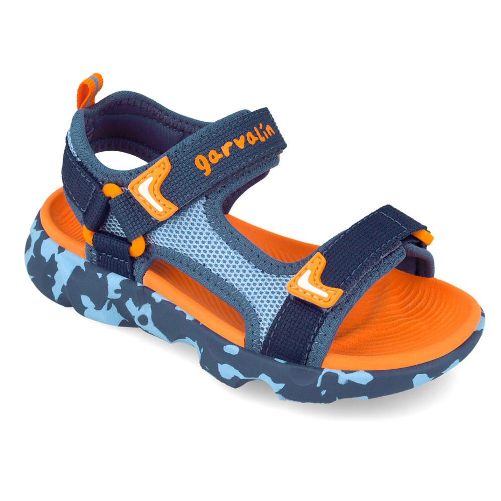 Garvalin sandal with velcro. Light and sporty, this is an all day sandal. The inner part consists of rubber and textile. The outsole consists of non slip rubber.