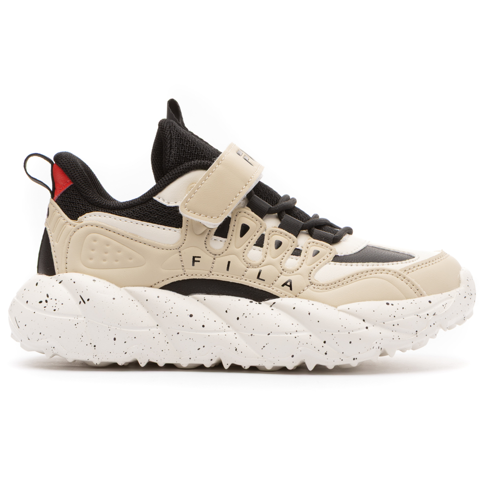 Fila Memory Space with velcro and elastic laces. It features a memory foam insole. The outsole consists of rubber.