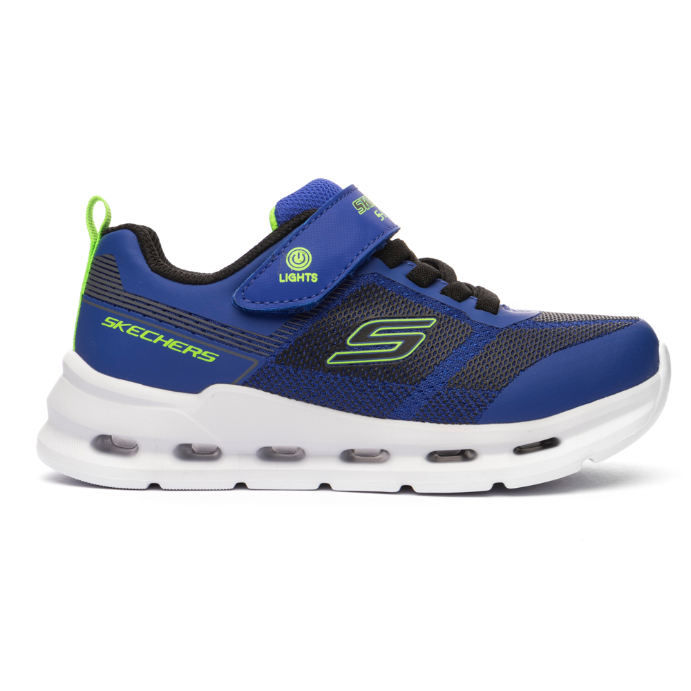 Skechers sneaker with velcro and elastic laces. It features lights in the outsole. The inner part consists of textile. The outsole consists of rubber.