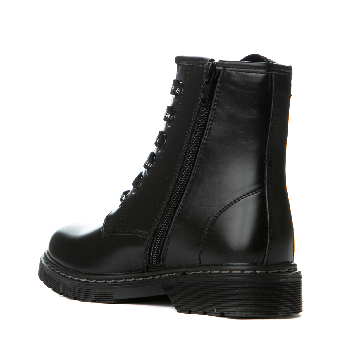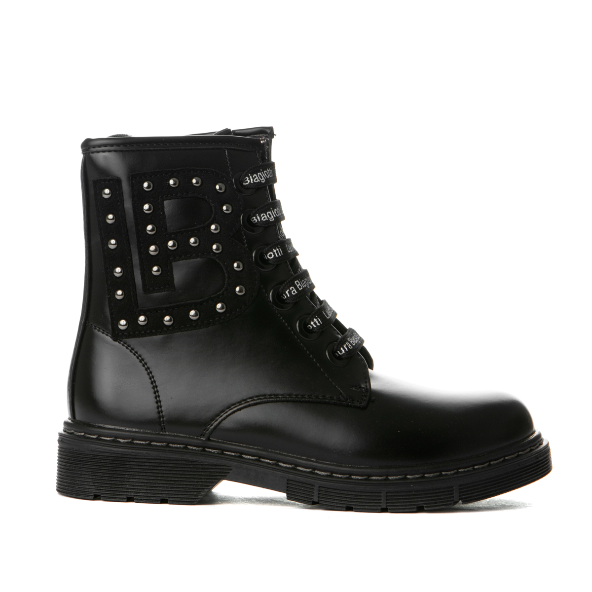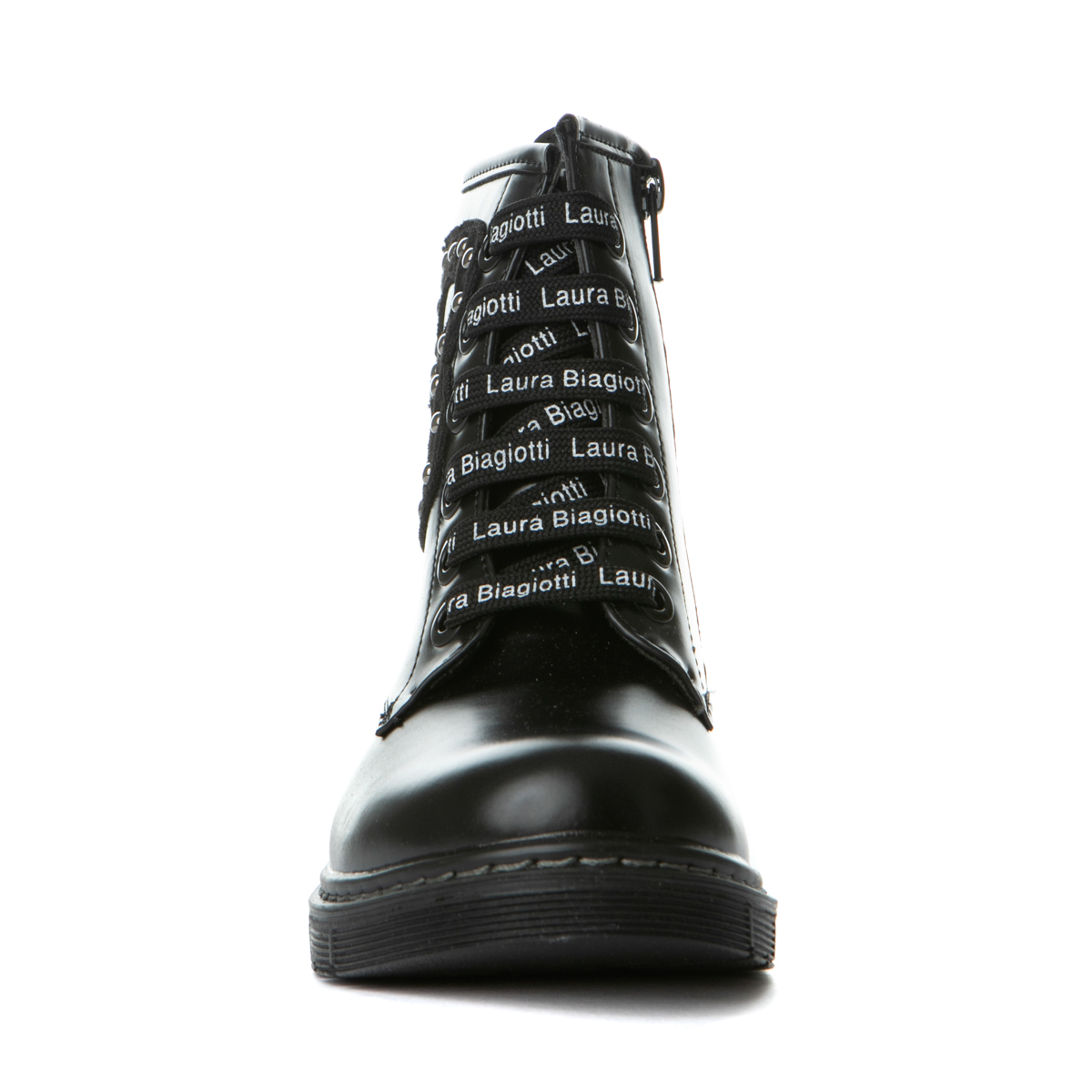 Laura Biagiotti boot with laces and zipper on the side. This boot features the logo of the brand on one side of the shoe. The inner part of the shoe consists of textile and leather, anatomic insole. The out sole is rubber.