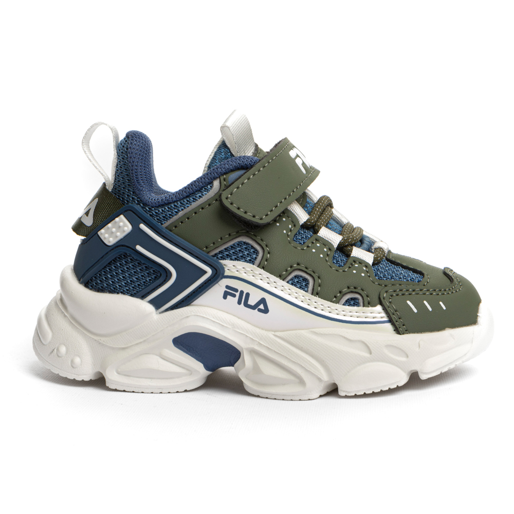 Fila Memory Spinel with velcro and elastic laces. It features a memory foam insole. The outsole consists of rubber.
