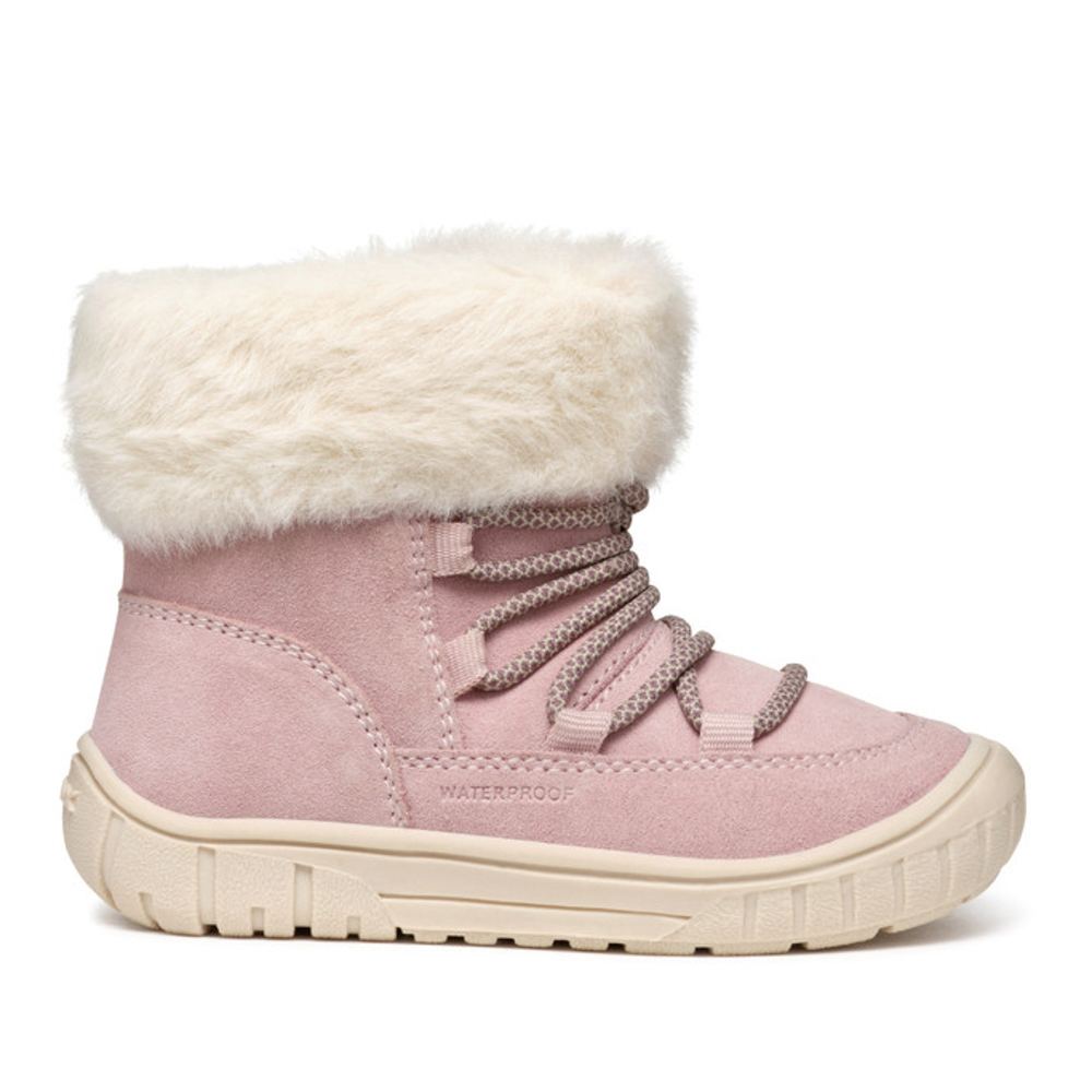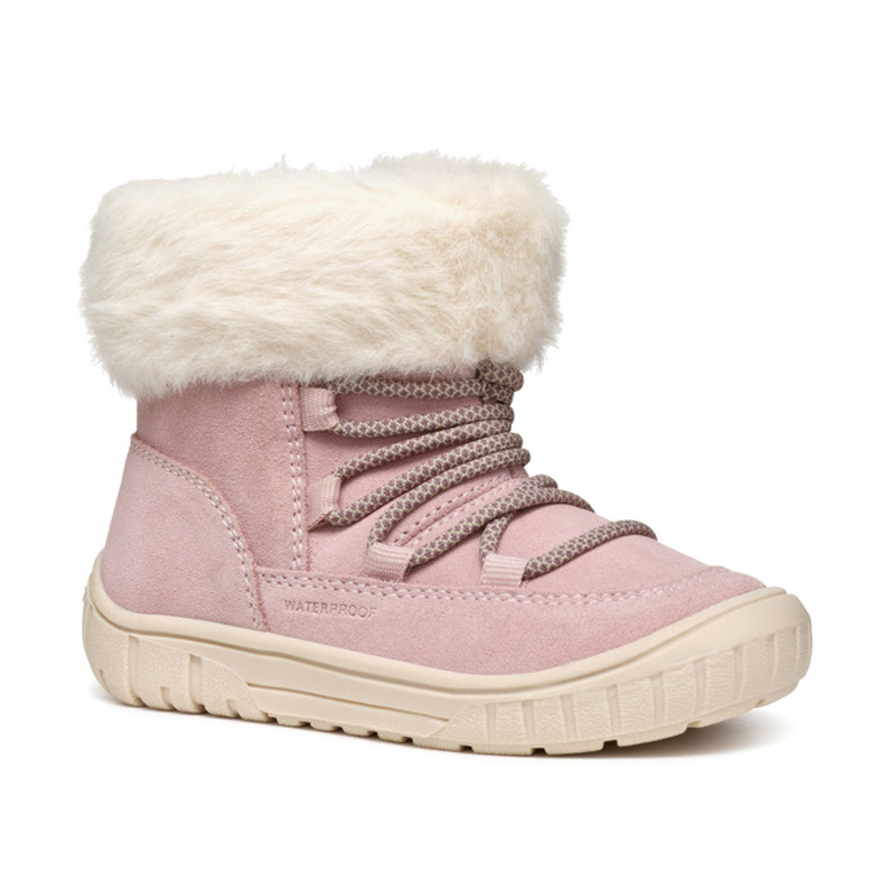 Geox waterproof boot with laces and zipper. It features fur on the top. The inner part consists of textile and a woollen insole. The outsole consists of rubber.