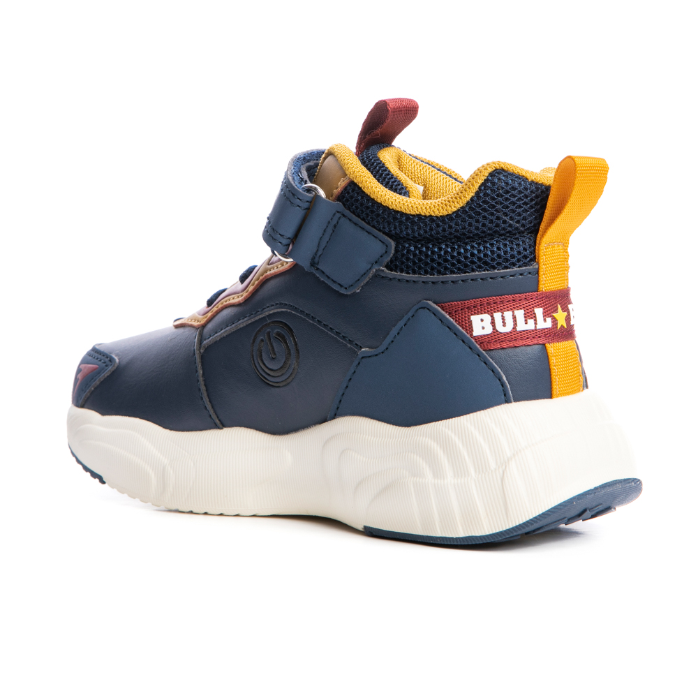 Bull Boys boot with velcro and elastic laces. It features a dinosaur on the side and lights in the outsole. The inner part consists of textile. The outsole consists of rubber.