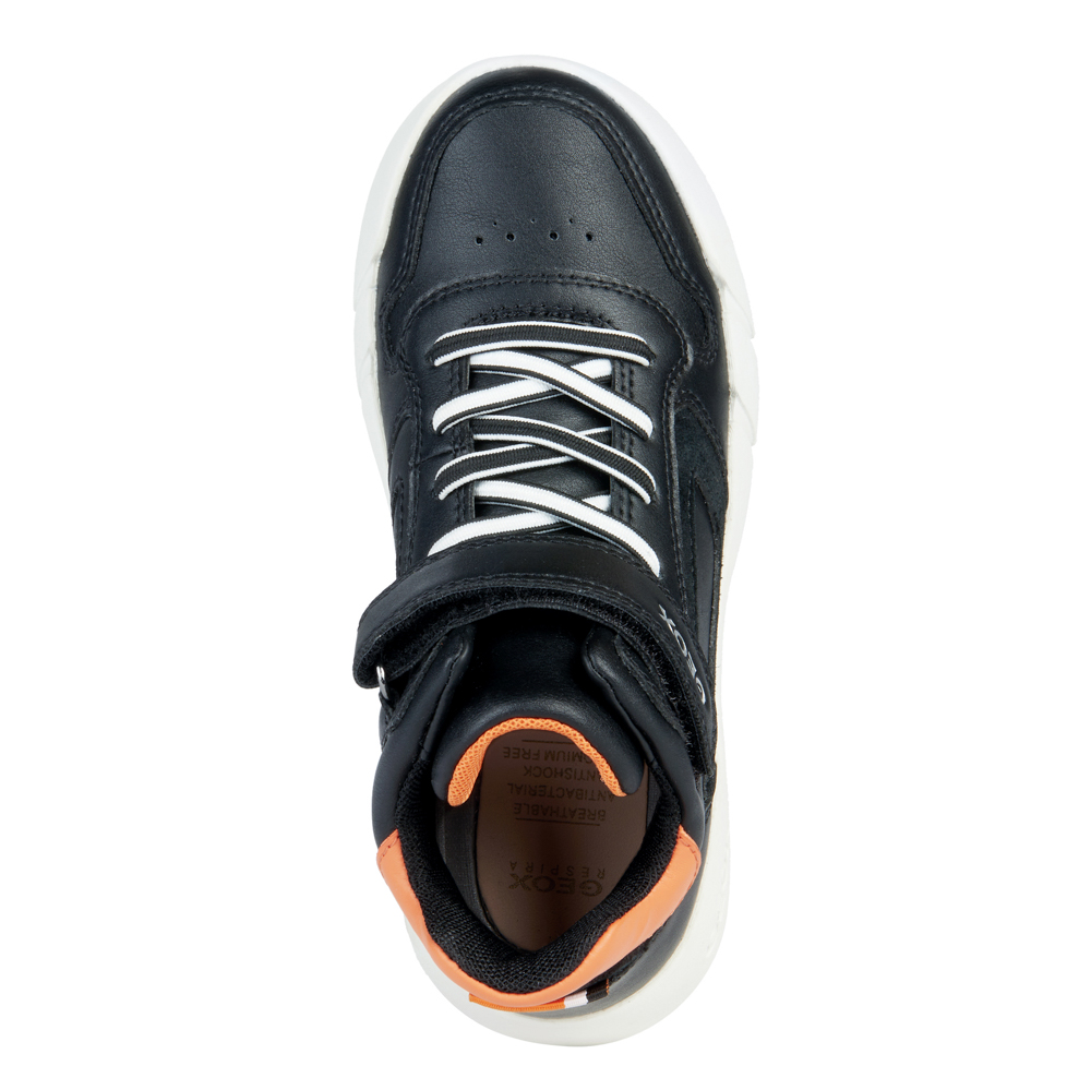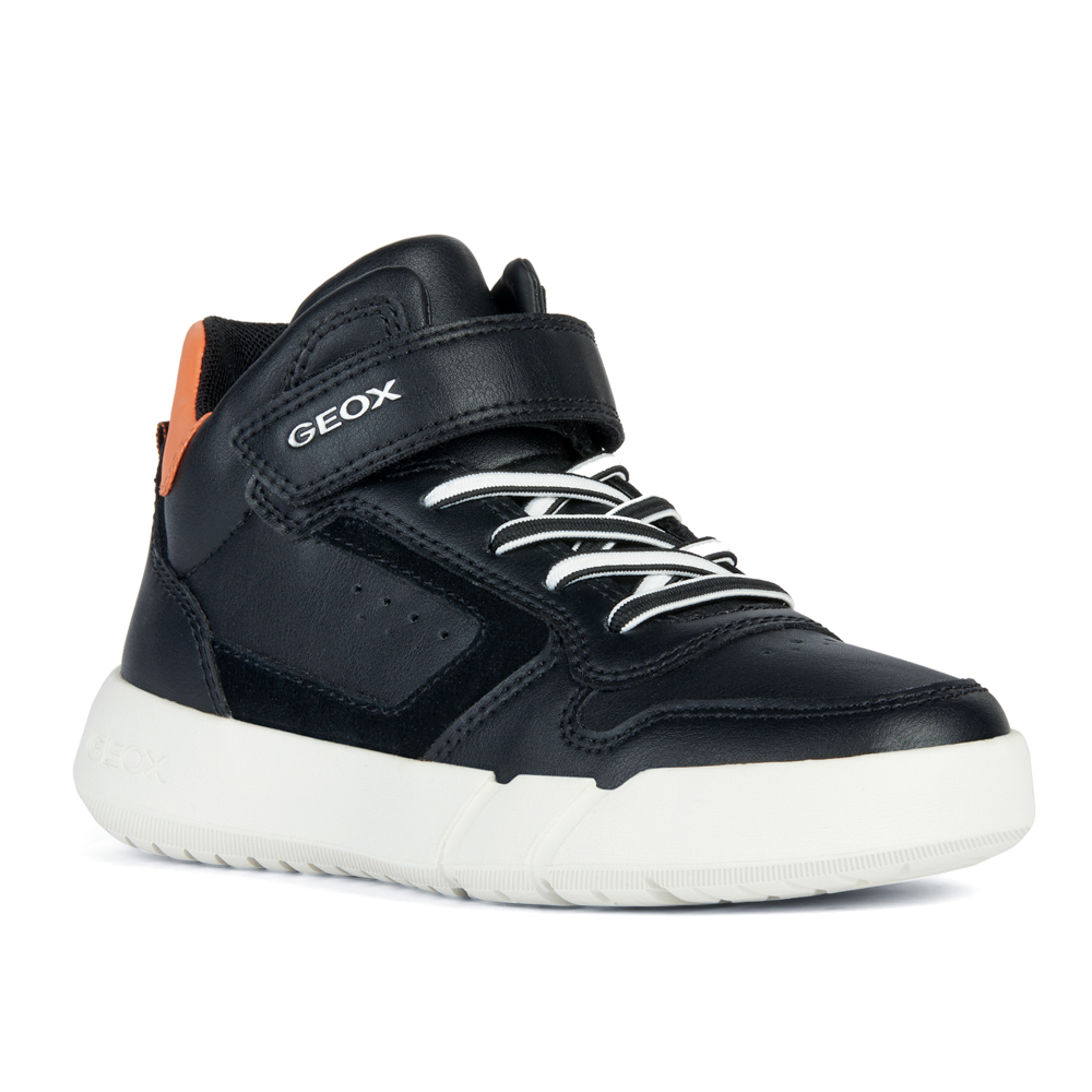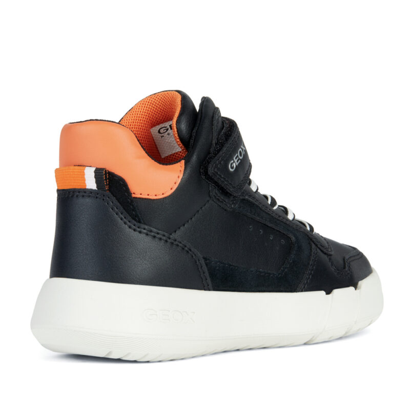 Geox boot Hyroo with velcro and elastic laces.It features orange details.The inner part consists of textile and a leather,anatomic insole.The outsole consists of rubber.