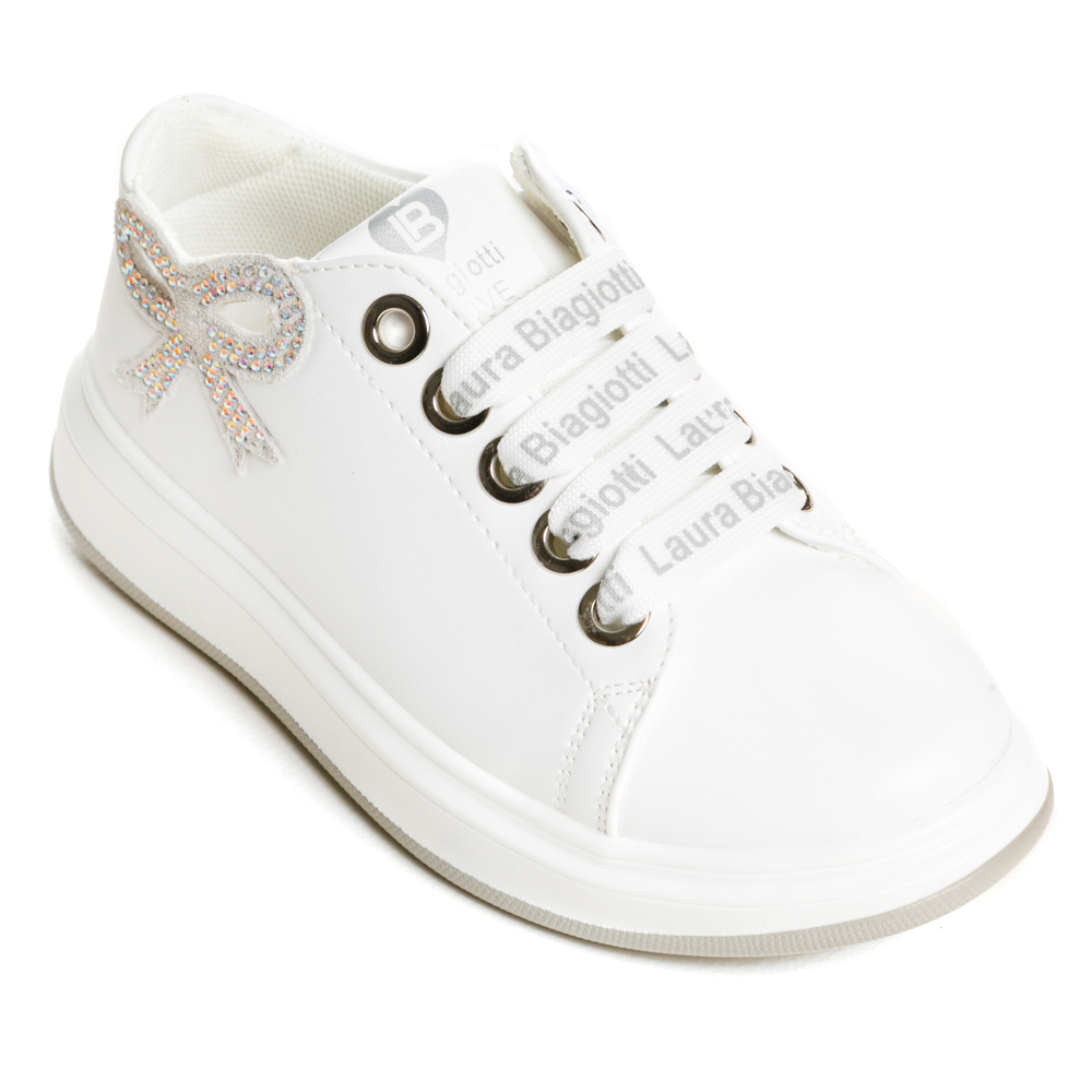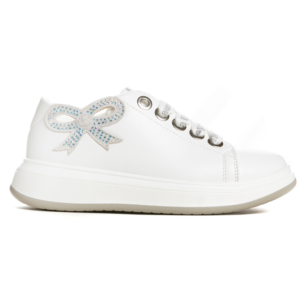 Laura Biagiotti sneaker with laces. It features a bow on the side. The inner part consists of textile. The outsole consists of rubber.