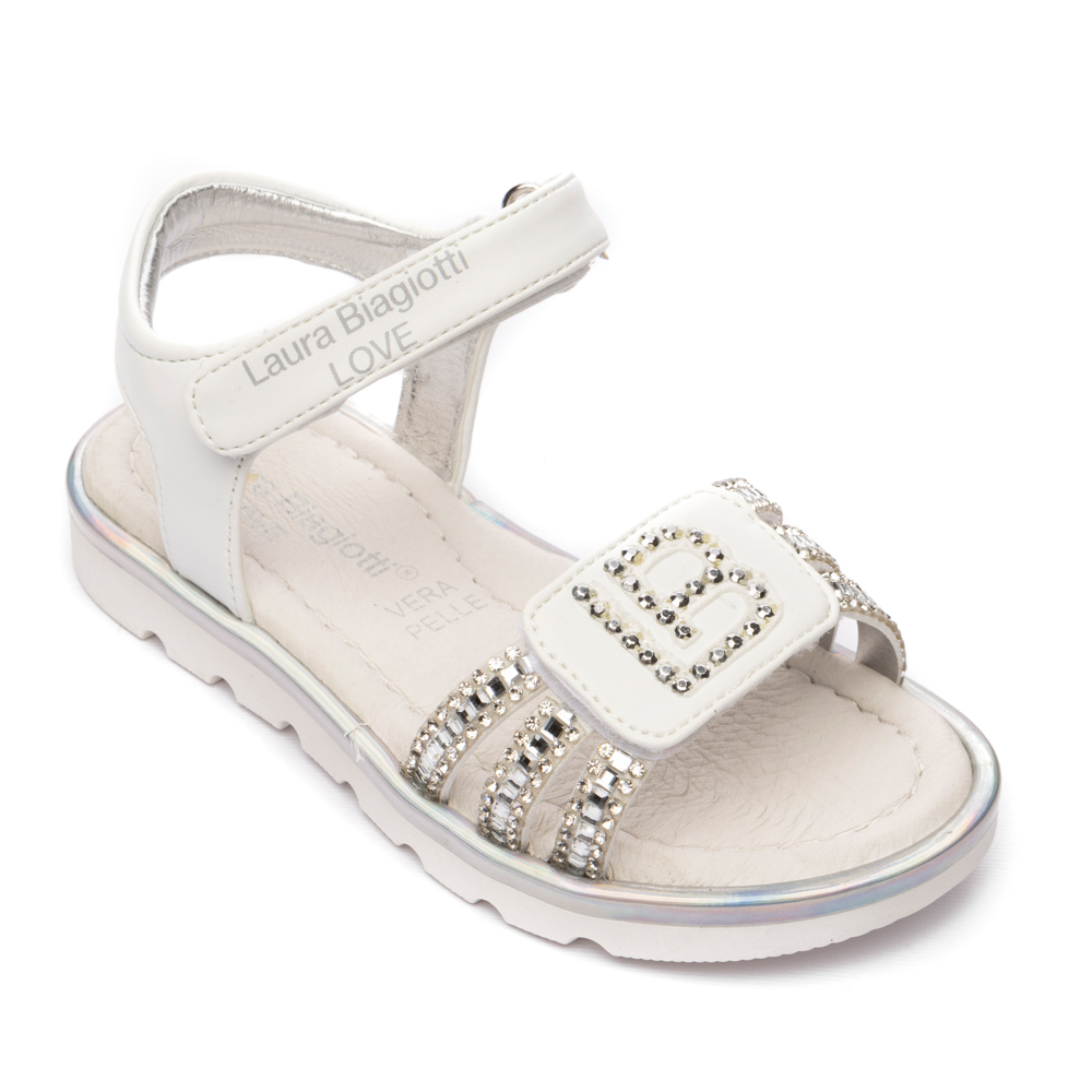 Laura Biagiotti sandal with double velcro. It features strass around the front. The inner part consists of leather and an anatomic insole. The outsole consists of rubber.