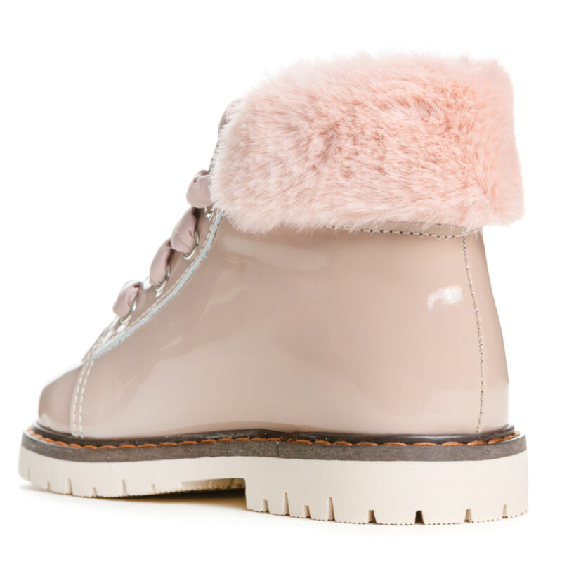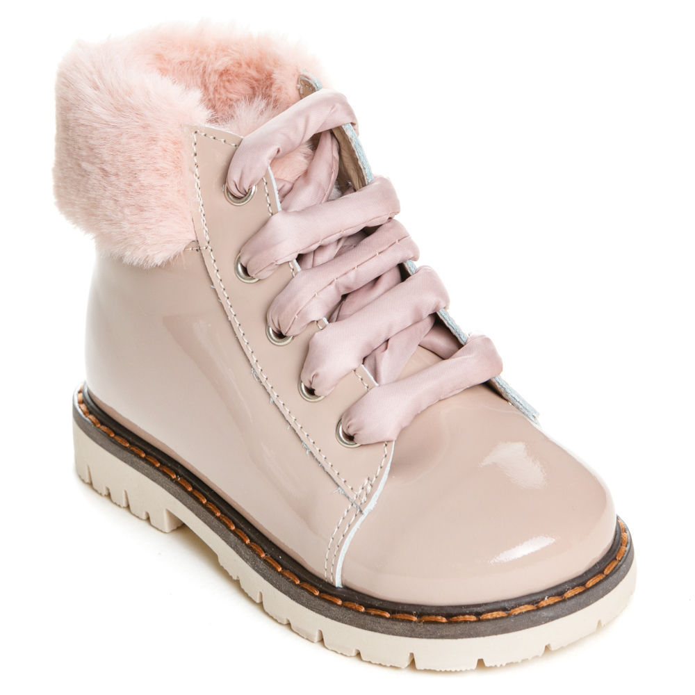 Babywalker boot with laces.It features fur on the top.The inner part consists of leather and a leather,anatomic insole.The outsole consists of rubber.