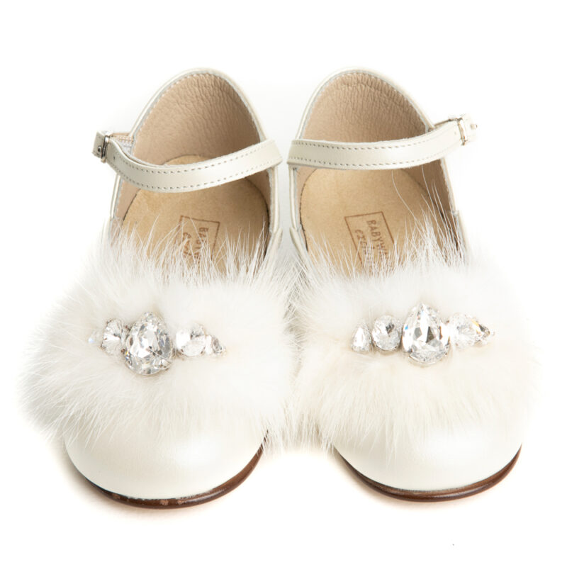 Babywalker ballerina with adjustable toggle.It features PonPon with Swarovski crystals on top.The inner part of the shoe consists of leather and a leather,anatomic,antibacterial insole.The outsole consists of rubber.